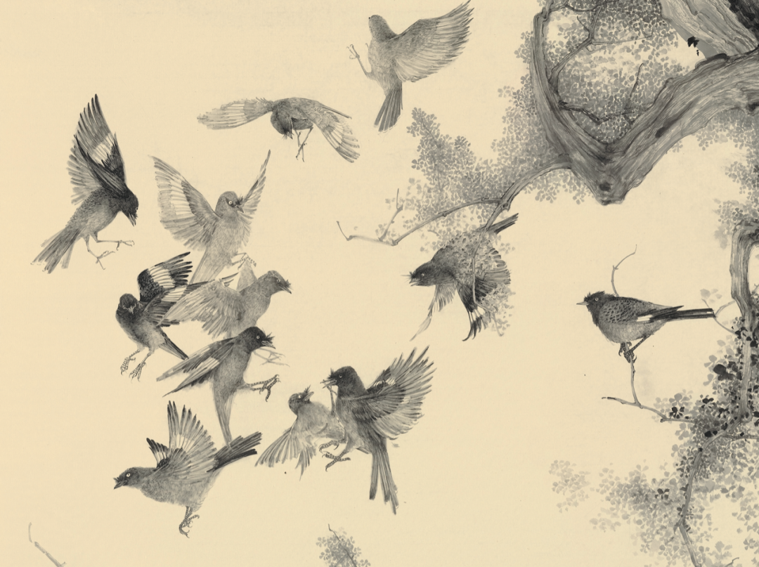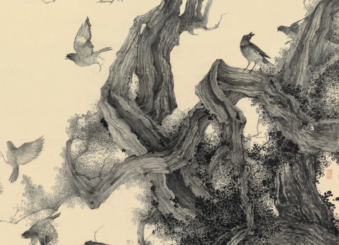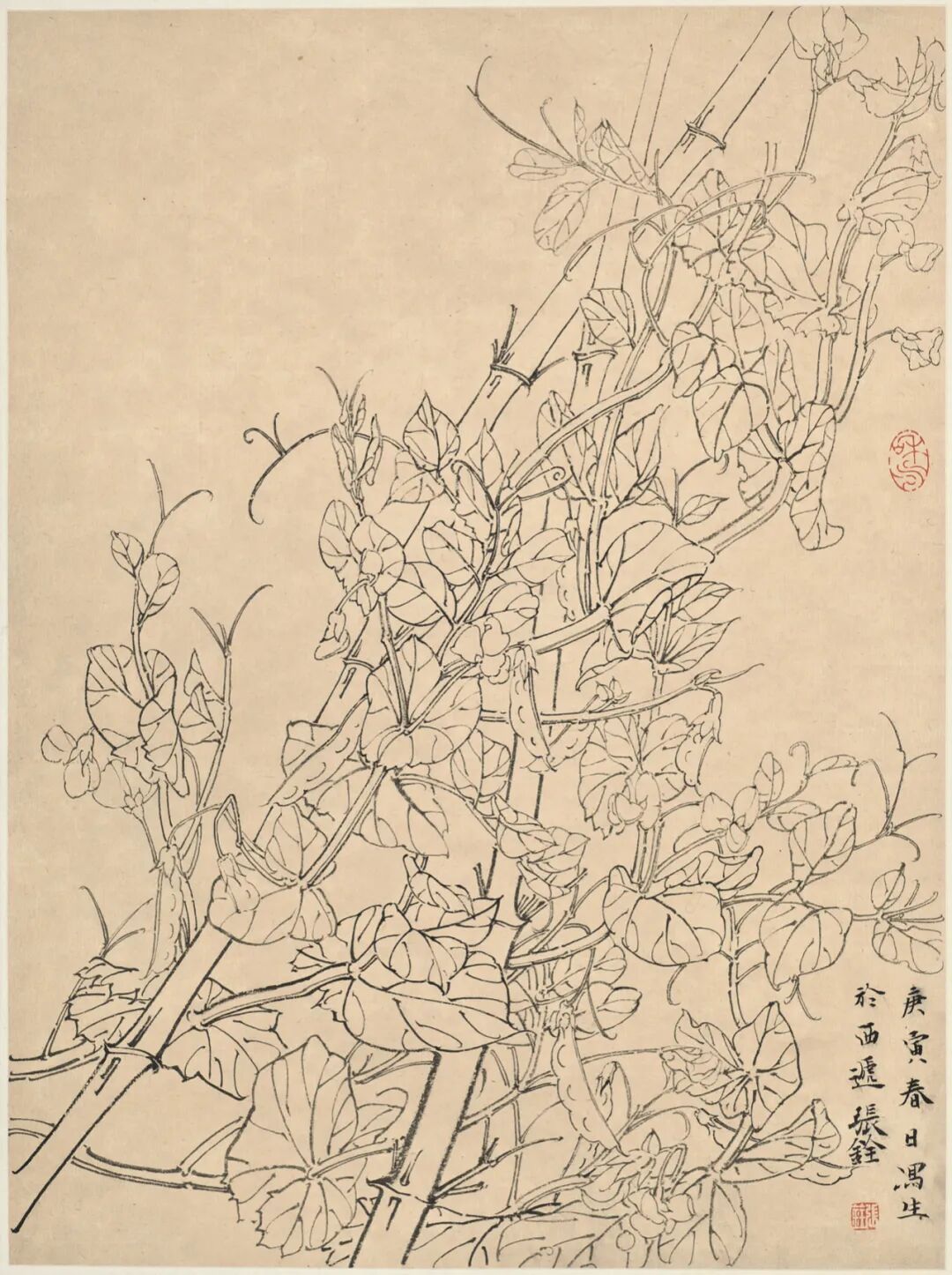 张铨的状态一向很好,左手执古图文,右手提生花妙笔,眼不离荤素长物,耳常听花开有声,既然进路上触目皆好,何必恋他处更佳,日日朝华夕拾,又何虑画中无物。张铨笃擅写生之法,故使常年路边倚马,花下设案,志在保鲜画中生机。凡形神已足即止,不事工谨矫饰,并引书家隶气入之,疏朗其画意。心旌如此,应算是读懂中国美术史这部大书了。且不提人物山水,就花鸟鱼虫一门,哪个大家不深受此法贴补,方有大成。今之学院花鸟写生从白描入手,然后步以勾填设色诸法。对此,张铨早已熟稔,但他最为心许的还是鲜活直取的没骨写生,即无困于墨象勾染的杂色状物,抑或是色墨交融骨肉翻豁的一笔了断。于此,是色是墨反不重要,所重乃在得天人妙合的那点神通。以我之见闻,得此高难技术链,便如花鸟家得降龙十八掌,故为圈内不治之痒。画史能辩,则无翼而飞,不辩则愈工愈远,虽工无益,古贤每作此类语,后学不可轻忽。