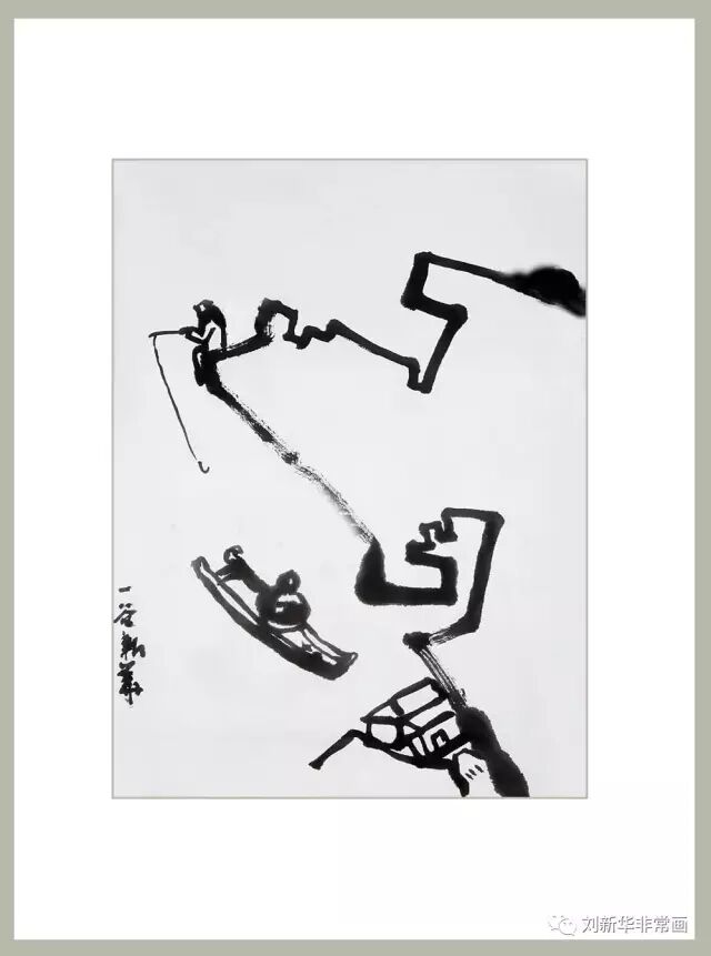 在他为数众多的水墨中,我发现不少作品描绘的是各种在“在路上”的情景。我并不知道刘新华有没有看过《在路上》这本被誉为几代人圣经的书。1962年美国小说家杰克·凯鲁亚克的《在路上》中文译本在中国出版后,影响了北岛、多多、芒克、王小波、崔健等诗人、作家、摇滚乐手甚至很大一批画家。凯鲁亚克说“我还年轻,我渴望上路。”小说中的主人公迪安·莫里亚蒂更是在书中喊出了困惑:“……你的道路是什么,老兄?——乖孩子的路,疯子的路,五彩的路,浪荡子的路,任何的路。到底在什么地方、给什么人,怎么走呢?”