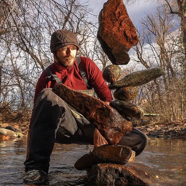 叠罗汉的游戏大家都不陌生,由二人以上层层叠叠摞成各种造型,最终达到一种平衡之美。来自美国科罗拉多州的艺术家迈克尔·格拉布就以叠罗汉的形式,创作了一系列反重力石碓。这位艺术家从小对各种石头子感兴趣,每当遇到一些困境的时候,他总是会拿几颗石子在手里把玩,这种方式让他有安全感,并且十分解压。