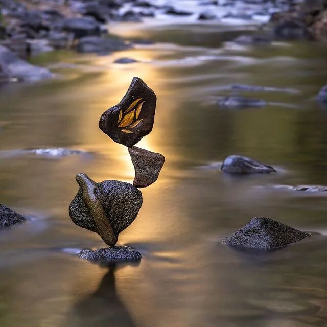 功夫不负有心人,迈克尔·格拉布终于掌握了石头之间的平衡奥义,创作出了一系列充满禅意和美感的堆叠石碓,它们就好像盘腿打坐的罗汉一样,带给人稳稳的踏实感。