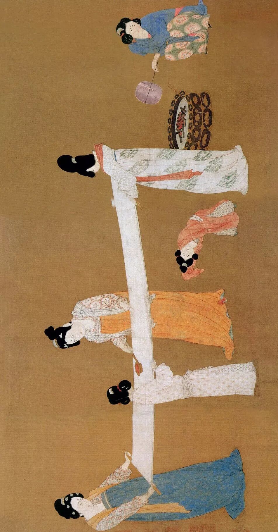 作品集2023-08-29 张萱丨捣练图 张萱(公元713-755 年),唐代画家,京兆(陕西省西安)人,开元时曾任史馆画直。"善起草",对亭台、树木、花鸟、皆穷其妙,尤擅长仕女画。在《宣和画谱》所载绘画作品中,有不少是描绘贵族妇女游春、梳妆、鼓琴、奏乐、横笛、藏迷、赏雪等悠雅闲散生活场景的画迹。画中的贵族妇女大都具有曲眉丰颊,体态肥硕、服装头饰繁缛华丽的突出特点,被称做"绮罗人物"。在他之前,以妇女为专题的绘画不多,专画妇女现实生活的就更少见,象顾恺之《女史箴图》一类的画,大都是和宣扬封建道德戒规相联系的。从这一角度看张萱画现实生活中的妇女题材,有一定进步意义。 《捣练图》是唐代名画,作者是唐代画家张萱,画作原属圆明园收藏。1860年"火烧圆明园"后被掠夺并流失海外,现藏美国波士顿博物馆。《捣练图》卷是一幅工笔重设色画,表现贵族妇女捣练缝衣的工作场面。这幅长卷式的画共刻画了十二个人物形象,按劳动工序分成捣练、织线、熨烫三组场面。第一组描绘四个人以木杵捣练的情景;第二组画了两人,一人坐在地毡上理线,一人坐于凳上缝纫,组成了织线的情景;第三组是几人熨烫的场景,还有一个年少的女孩,淘气地从布底下窜来窜去。 本文来自微信公众号“七零后水墨”(ID:qilinghoushuimo)。大作社经授权转载,该文观点仅代表作者本人,大作社平台仅提供信息存储空间服务。 TAGS: 中国画绘画艺术 相关文章Kleoniki Andr…这是大王Day.281获奖作品《2020最佳图书…精选头像|搞怪来袭!安东尼奥·布埃诺 作品配色清新梦幻的场景插画,充…美国Jennifer Mc…【小鹏设计】设计小改/动力…【首发】地点空间丨打破空间…谢商家不坑之恩!只骗有钱人…