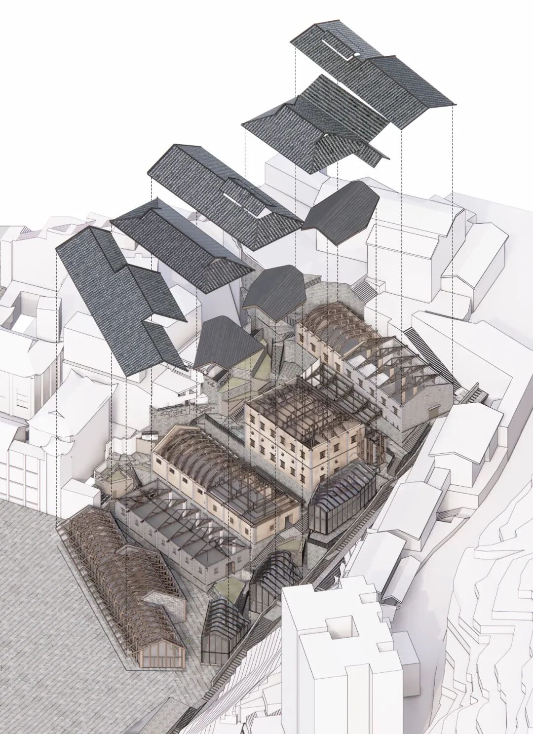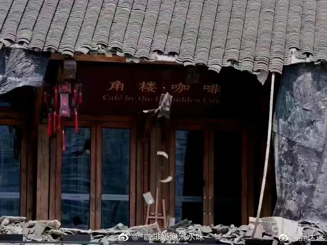 到底是怎样的损坏?该馆的房顶,因沥青在高温中被晒化,导致瓦片大面积整体滑落。