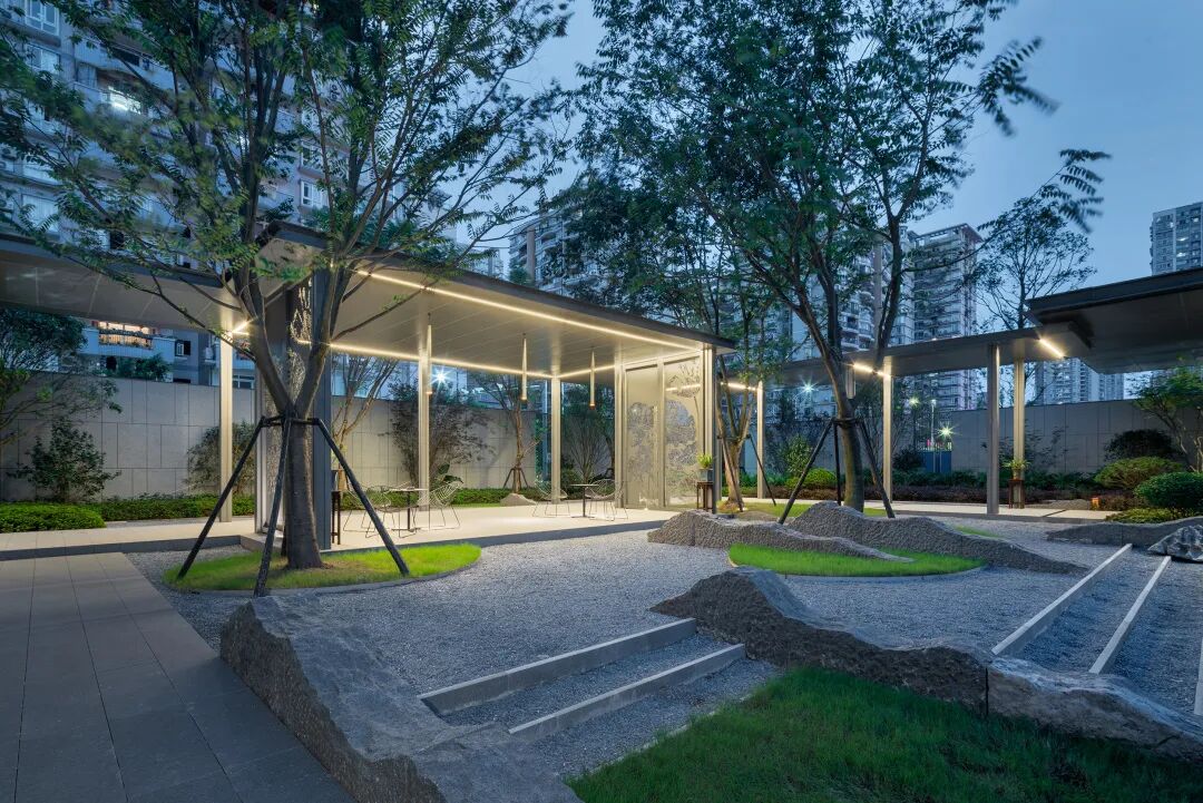 这是一个位于重庆老城区中心,景观1.2万方的高层居住区项目。周边没有合适的公园体系,如何让业主能在社区内部惬意的生活,并融入典雅的场景体验是此设计最重要的挑战点。虽然她有自己的一整套形式美的逻辑做支撑,但形式服从功能,她最终落脚在贯穿春夏秋冬的行为场景组合中。我们希望蘭园的居民们,能非常惬意地享受楼下生活,能够在若干年后,有美好的生活记忆。