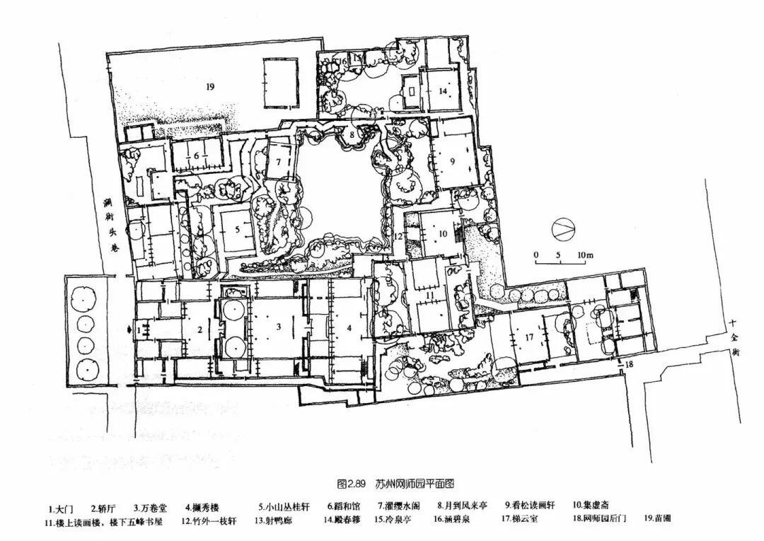 张樟:大家能想象蘭园对标过网师园吗?我举几个例子,如高差带来的不同视觉体验,网师园20x20m的水面边就有上至假山和下至水岸积石的约六米高差,带来岸边环路起伏的情趣;又如这种针对高强度复合性的使用区域,网师园濯瀴水阁周边一带,可游、可行、可居、可望,唱戏、观鱼、喝茶,真是螺丝壳里做道场;又如,对植物特性的挖掘,小山丛桂轩利用桂花的香气造景等等,在此,不作展开论述,只是希望和同辈共勉,向热爱生活的先贤学习。