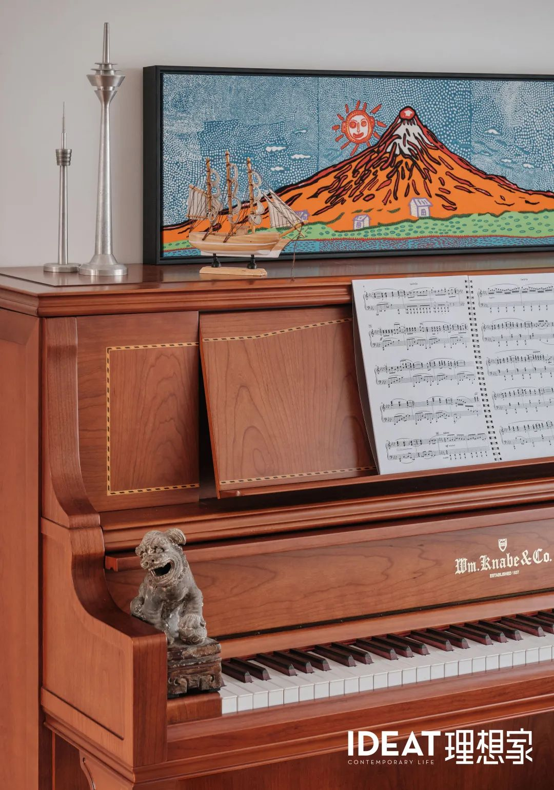 二楼客厅 钢琴上是艺术家草间弥生《富士山》版画
