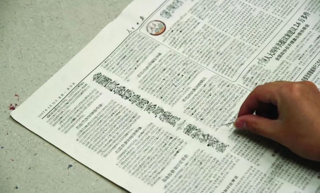 后来,他干脆用刻刀把字刮掉。直至2007年,张震宇决定每天耗时5、6个小时,刮掉那一整年的报纸。