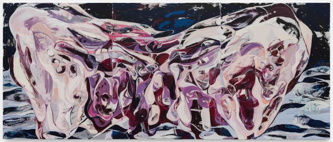 在我看来,你的画面里有一种强烈的新鲜和糜烂之间的关系,或者说“速度感”,这种“速度感”不仅是画面结构的速度感,而是像塑料腐烂掉的那种“速度感”。你关心这个时代的“速度感”和新鲜度,可能是因为你们的世界比我们要新鲜。你画中枯萎的意象好像比较少,都是在开放和生长,都是很迷幻的画面,而过去的女性主义绘画很重要的议题是关于身体的枯萎和对皮囊的反思,都是带着皱褶的那种感受。