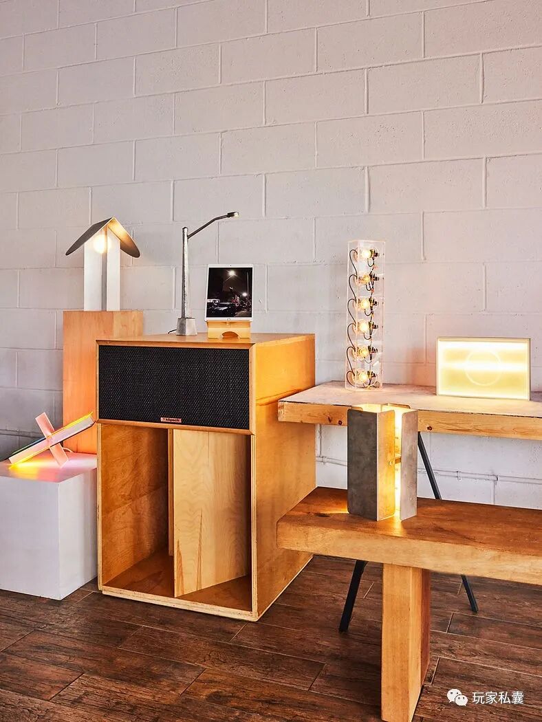 这款名为“Lumolith”的落地灯,又一次触动到我的浅表记忆,大约十年前就停产了的B&O经典设计BeoSound9000,一款六碟连放的CD播放器。跟它一样,Lumolith也能横摆竖摆挂墙落地随意摆放,每只灯泡都能独立控制,材料全部来自回收道具。