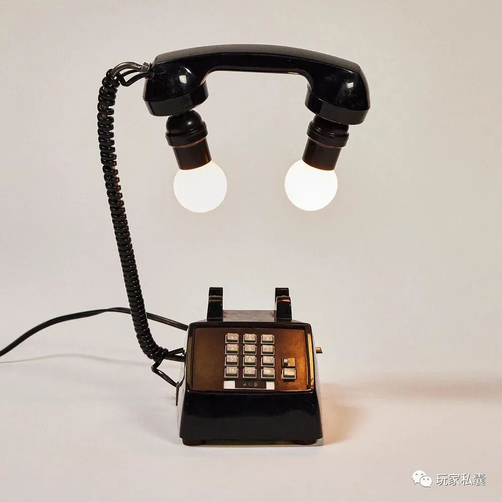 电话另一头通常象征着未知,设计师在话筒和座机之间贴上一张带有渐变图案的凝胶灯罩,营造出一种跳脱当下现实的不安与惊奇,仔细看灯罩后面仿佛是一副陌生的脸,有鼻子有眼,但无法分辨TA的表情,按下Redial键可唤醒铃声。