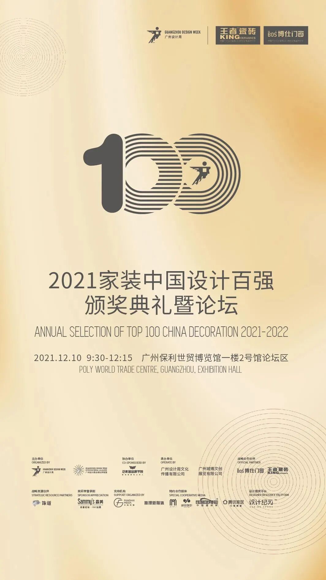 “家装中国设计百强”评选由广州设计周于2018年首度面向中国家装设计行业发起,旨在以追求“差异化设计”提升行业生态,以优化“用户体验设计”引领行业创新,打造符合新时代下的家装设计行业标杆,共同见证中国家装设计行业奇迹,凝聚中国家装设计行业力量。2021家装中国设计百强颁奖典礼暨论坛是中国最具设计力的装饰企业品牌大集合,颁奖典礼现场为家装品牌、家装设计、家装工长颁发荣誉同时围绕家装智能化、装配式住宅、集成家装等新家装趋势热点,特邀资深专家展开专题解析。