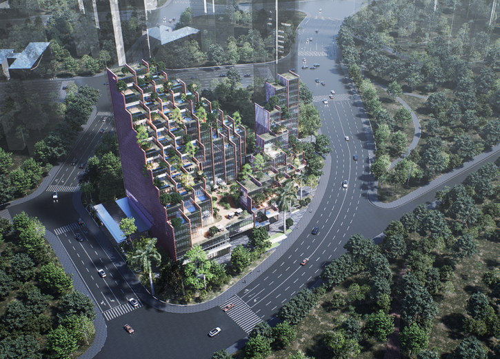 作品集2023-06-22 湛江“悬浮森林”海景酒店&公寓/一境建筑设计 项目思考 项目坐落于湛江广州大道以南,湾沿海发展带与城镇功能集聚轴的交界处,是一座高80米屹立于湛江市CBD北望湛江湾海景,及酒店、公寓、商业为一体的综合体。 ◎项目区位 为满足更多顾客的不同场景需求,多功能酒店开发项目逐渐兴起,酒店业正在尝试纳入更多的共享空间及舒适的室外空间,以更好地满足人们及时代变化下的需求。 悬浮森林 我们希望借项目优越的地理位置,创造一座城市中的“悬浮森林”,180度观海与自然近距离接触。在这里,你可以看到海面上白帆点点的帆船和远处的蓝色海洋,迎接温暖的海风和阳光。 ◎拔地而起的悬浮森林 ◎悬浮森林户外平台 ◎功能分析 项目用地为不规则多边形,将整个建筑体块面向东北方的湛江海湾,以最大限度地延伸景观面,同时让体块沿着观海区域逐层后退,错落有致地展现出每一个角度的景色。通过这种方式最大化地利用资源,使景观视线得到了充分的延伸和错落,为整个项目增添了更多的美感和价值。 ◎公共区域 ◎商业街 ◎公寓入口 ◎酒店入口 结合观景区域划分,对建筑形态轮廓进行初步推敲。为了创造更多的公共空间,我们打造了一条海景通廊,将整个建筑体块从中间打通,分为两部分。 根据空间景观的价值,对功能进行合理划分,在沿海面广的区域主要为公寓,西北部分为酒店。通过设计为每一位住户提供了更多的公共空间,同时也为整个项目注入了更多的美感和舒适度。 ◎屋顶花园 通过退台的形式优化空间,增加观景平台和活动空间,带来更好的观景体验,通过屋顶花园的形式丰富植物景观,并利用户型中的无边际泳池作为与远处海景相呼应的延伸。 为了打造“户户有亮点”的产品,将公寓产品划分为三个类别:空中别墅、海景公寓和花园别墅。以满足不同客户的需求和偏好。 采用屋顶花园的设计,通过退台打造独立的室外空间,合理根据用地打造不同属性的户型产品。融合现代城市生活和自然环境,让人们在家中就能享受海天相接的城市美景。 项目信息 项目名称:湛江市广州大道以南酒店综合体项目 设计单位:一境建筑设计 甲方单位:湛江荇润置业有限公司 总建筑面积:528823㎡ END 公众号文章仅供内部交流,版权归原作者所有 如有部分权属不清导致的侵权请联系我们删除 本文来自微信公众号“青年建筑”(ID:i80arch)。大作社经授权转载,该文观点仅代表作者本人,大作社平台仅提供信息存储空间服务。 TAGS: 建筑湛江空间酒店项目 相关文章Kleoniki Andr…这是大王Day.281获奖作品《2020最佳图书…精选头像|搞怪来袭!安东尼奥·布埃诺 作品配色清新梦幻的场景插画,充…美国Jennifer Mc…【小鹏设计】设计小改/动力…【首发】地点空间丨打破空间…谢商家不坑之恩!只骗有钱人…
