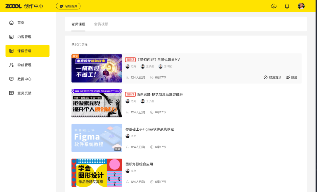 如果你有自己的设计课程,还可以在【课程管理】里直接展示你的课程信息。