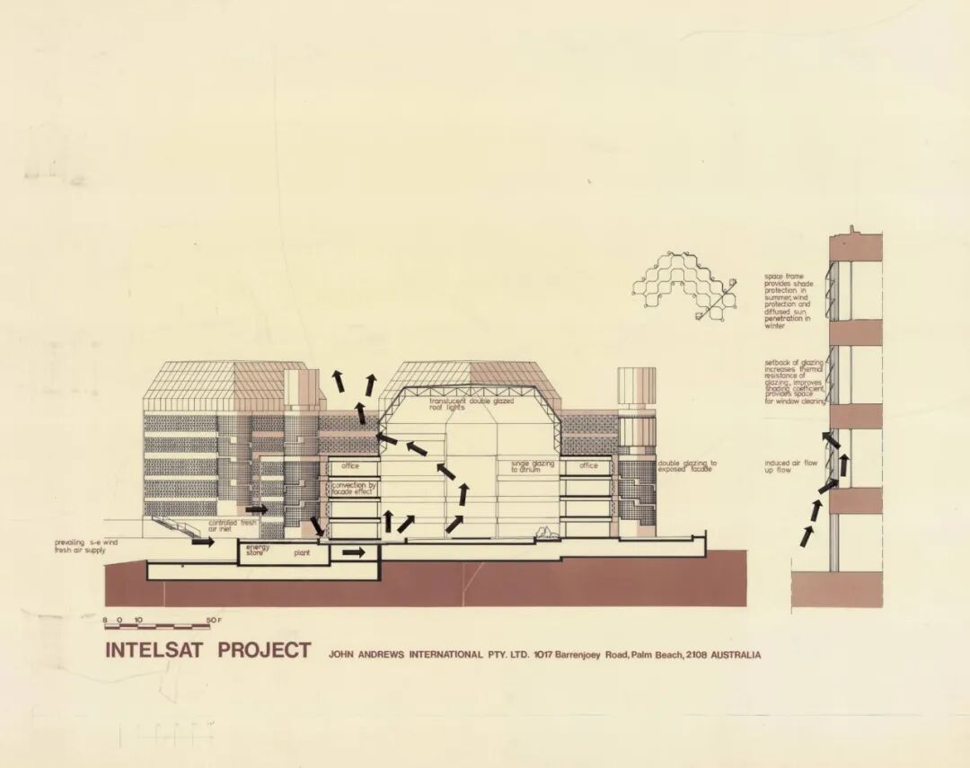 约翰·安德鲁斯 是一位没有进入大多数建筑史的建筑师。毫无疑问,你会在有关澳大利亚和加拿大建筑的调查中发现他的身影,但在其他的调查中,如果有的话,也是相当简短的。他没有得到像美国或西欧的建筑师那样的关注,同时,澳大利亚和加拿大也不是最近的作者想要发掘被忽视的人才的地方。安德鲁斯的职业生涯是一个椭圆形的,跨越了英联邦的边缘--从澳大利亚到加拿大,然后又回到那里--并在美国进行了一些尝试。在他自己的Gund Hall(哈佛大学GSD的所在地)举办的一个出色的展览 John Andrews: Architect of Uncommon Sense 中,才华得到了应有的体现。由保罗·沃克和凯文·刘策划,利用各种档案材料,加上芝加哥艺术家 Noritaka Minami 的最新照片,这是一个令人印象深刻的展览,今年哈佛大学设计出版社也将基于此出版一份调查出版物。