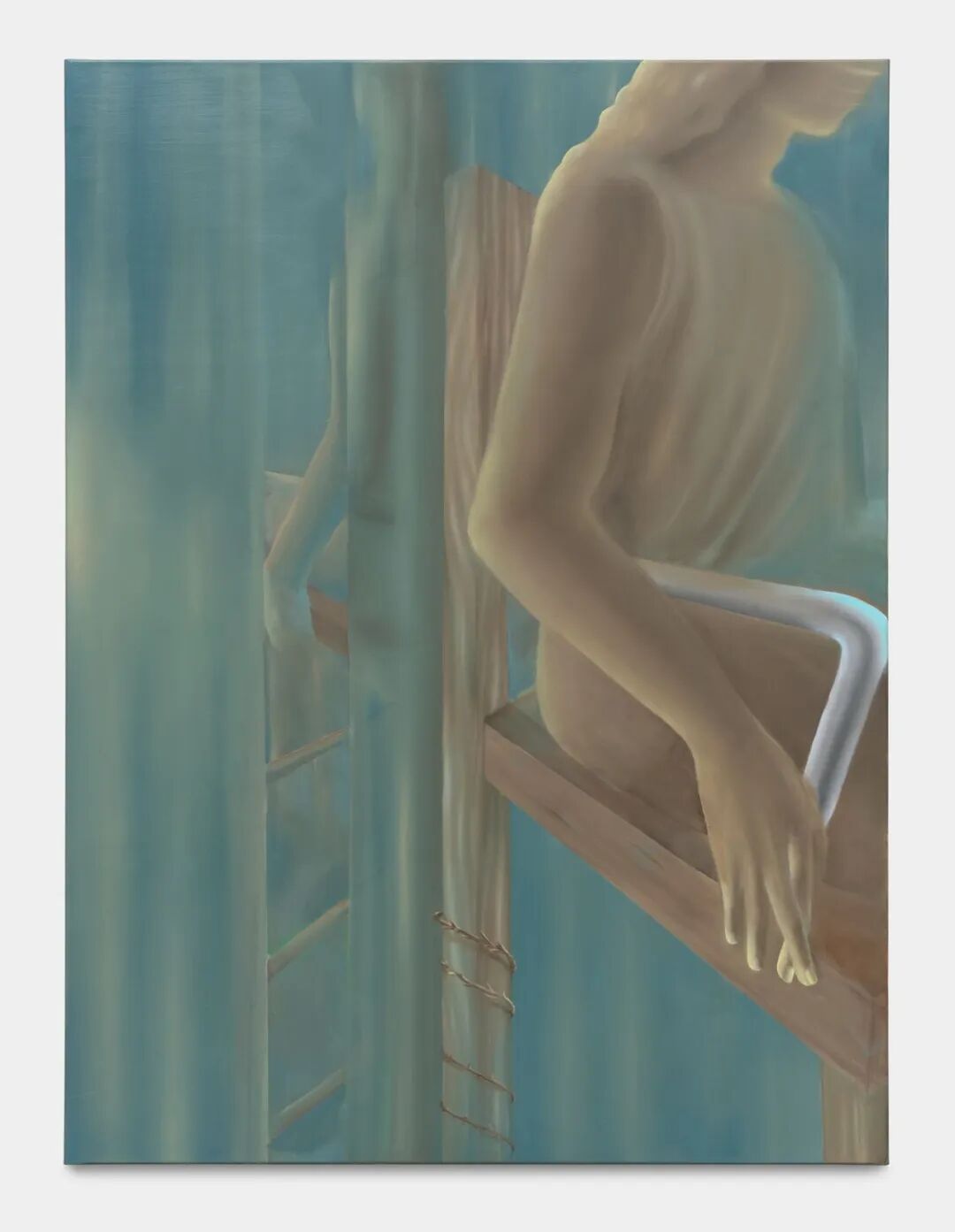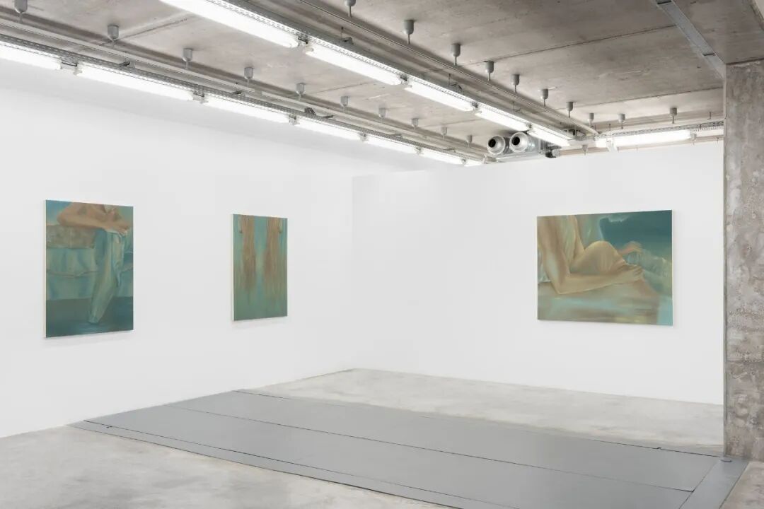 在其东巴黎的工作室内,阿德勒运用了有限的主色调创作此次展出的新作品系列:互补的暖棕色调,包含了橙赭色或焦锡耶纳色,并搭配上更为明亮强烈的蓝。展中的十二幅新油画作品,更是定调了独具魅力的空间氛围。这位鲜少公开展出的年轻法国艺术家(出生于1993年),作品聚焦描绘独具特色的人物肖像。画中人物形象波澜不惊的清冷表情令人联想到古代雕像,并身在空灵迷幻的室内空间或自然风景之中。展览中的一幅作品中,可见一名女性坐在椅子上,头微微向前倾斜;另一边的两名女性的半身像,她们皆有满头飘逸头发并沐浴在水池中,凝视着远处象征着海上的地平线的蓝色光环;又或者是那名靠在桌子上的男士,他的手几乎没有碰触到脸颊,脸上的嘴微张着,其身上的服装与身后耀眼的天空融为一体。阿德勒画中的角色,不论从身前还是身后看,都与周围朦胧不明的场域交织难分,映照出心灵深处的内在风景,时间也仿佛于此凝固。