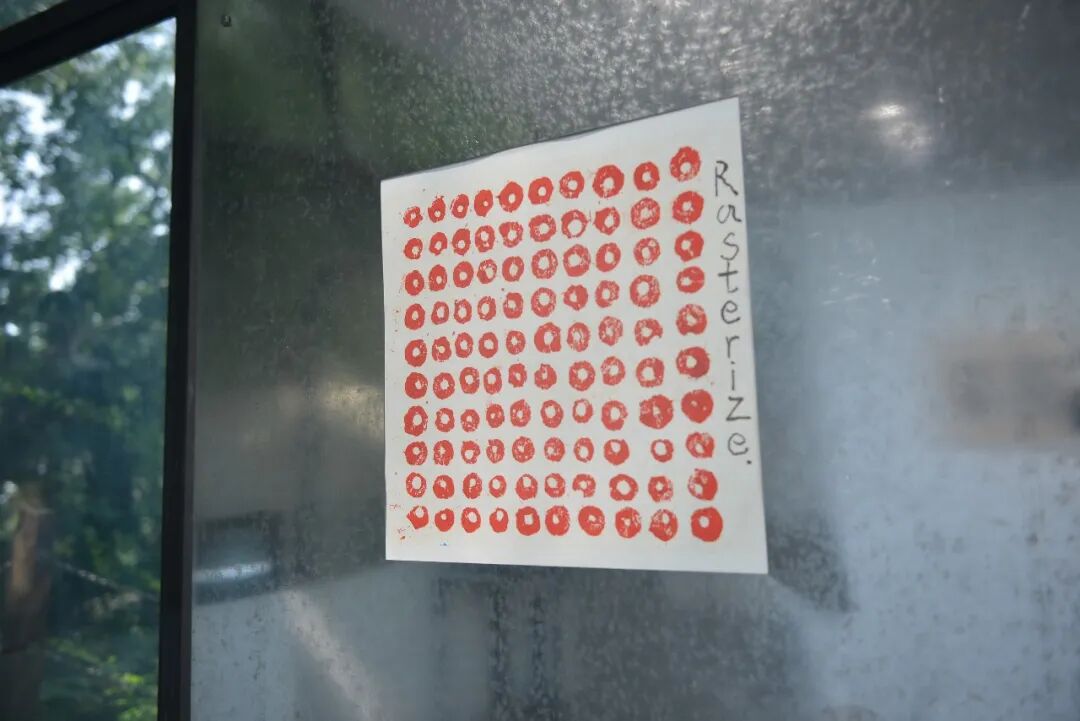 线条与色彩,结合构成画面的符号,在抑子的各类型作品中得到了有效且各有特点的呈现。线条的高频变化给予了数字媒体具象化的冲击力,将艺术家接收到的信息拆解并区分。综合材料作品中相冲撞又相融合的色彩是在此基础上的重塑,由此构建了抑子独特的精神世界。而在拓印作品里,符号则成为了创作情感表达更具体的表现,通过或直接、或象征的手法将创作者的视角摆放在观者面前。