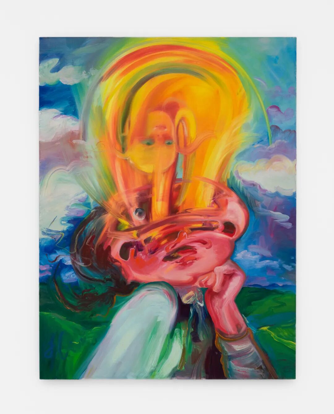 「梦的每一部分」可说是延续了约瑟夫斯自己对田园风格的诠释延伸。她生动而充满氛围感的绘画作品,展现了一份独特于自己的超现实主义和表现主义手法,尤其是在处理作品中做梦的角色,或在无尽可能中唤起特定梦境的时候;通过白日梦、夜梦或幻觉作为场景。在梦中觉醒的可能性永远存在,梦的本身便提供了转变的途径。无穷形式和性质的梦,也与克服生命中的失去、悲伤和面对人类经验中的种种不确定,油然而生的困惑一同共生。约瑟夫斯也经常于作品中,流连忘返于物质和精神的双重场所,凸显生命的短暂易逝。在《头壳裂开 / 让上帝进来》一画中,约瑟夫斯想象着画中人物在徒步旅行时抵达了山顶,并在高峰之上,经历了一次极具变革性的觉醒。按艺术自己的话来说:“当他们放手去见证周遭的美丽时,他们的真实自我就显露出来了。”在这一刻,梦境被打破裂开,接踵而来的便是现实和当下的真实之美。