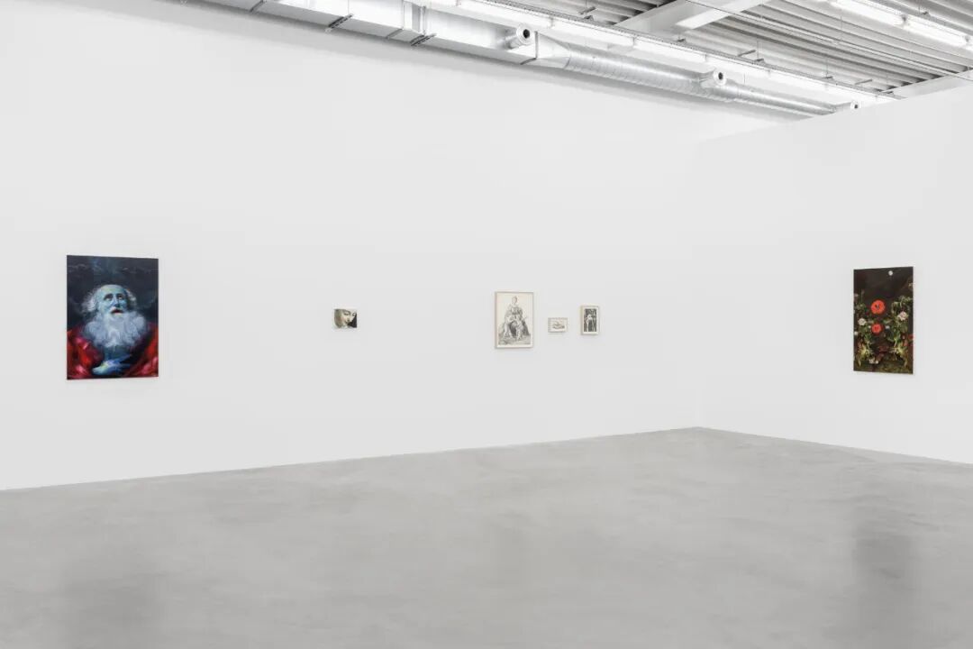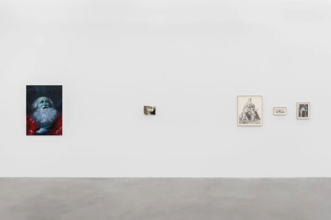 而皮姆作品中的圣母有着三条手臂,在第三个手上出现的是“情人眼”——这是18世纪晚期的一种潮流趋势,那是一种带有情人眼睛图像的微缩模型,始于英国的乔治四世。这位英国国王将自己眼睛的微缩模型送给了他所追求的玛丽亚·安妮·菲茨伯特,但她因为是两次丧偶的天主教徒,所以不能改嫁。乔治四世还佩戴了一枚印有菲茨贝尔特眼睛的胸针,这是一个象征情感忠诚的标志,并在英国上流社会中流传了半个世纪,后来消失了。在皮姆近期的画作中,也出现了其他眼睛符号:这在当代语境中并不常见,但当他们的缘由被讲述时,便替展览营造出出了令人难以忘怀的亲密感。