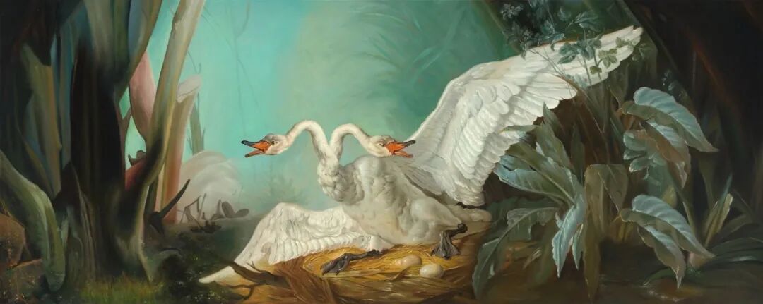 而许多事物也不单只是表面看起来的那样,故事也是具有多维面向。里尔国王孩子们的变身成为了后世天鹅湖故事的基础,而纵观艺术史上莱达更是以多种表现形式不停在绘画中出现。我们身而为人,一遍又一遍地讲述这些故事,故事也随着被讲述而变得更加生动和难忘。就像一只双头天鹅,或一只送给爱人的眼睛,或是第三只手臂,这便如同像我们所生活的世界:令人动容难忘、纷纷扰扰。我们每个人也能从中看到自己想看到的东西,以及也会试图通过创作叙事、图像和艺术来反映它,解释它。