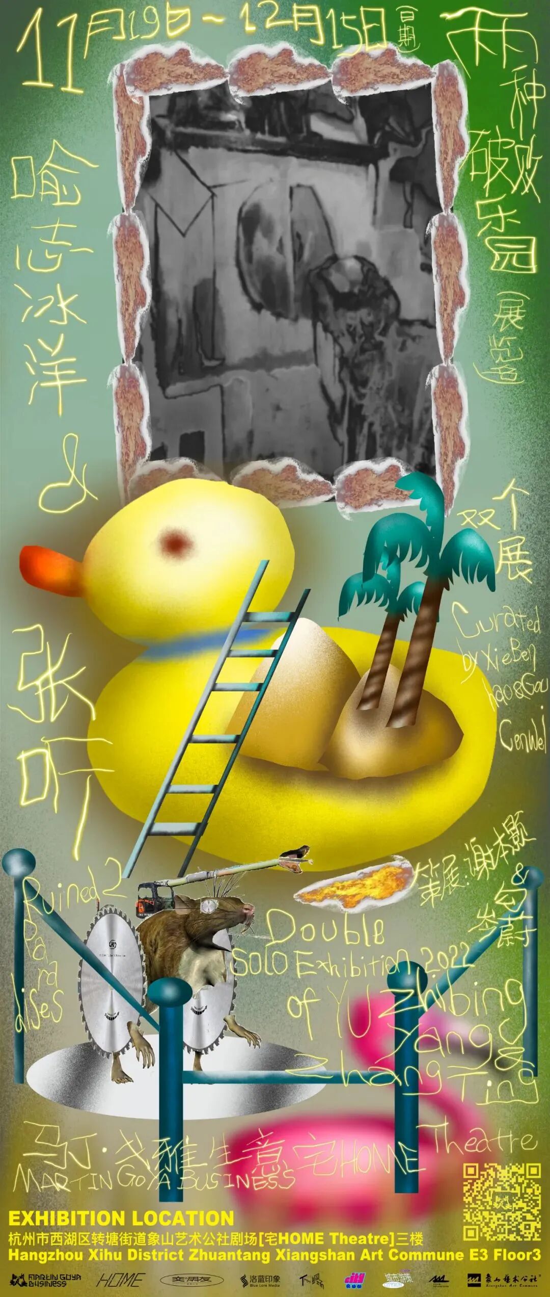 在“交个朋友”计划双个展《两种破败乐园》中,艺术家张听与喻志冰洋在马丁·戈雅生意双子空间宅Home Theatre三楼的两条平行的走廊中呈现了两种截然不同的破败乐园。
