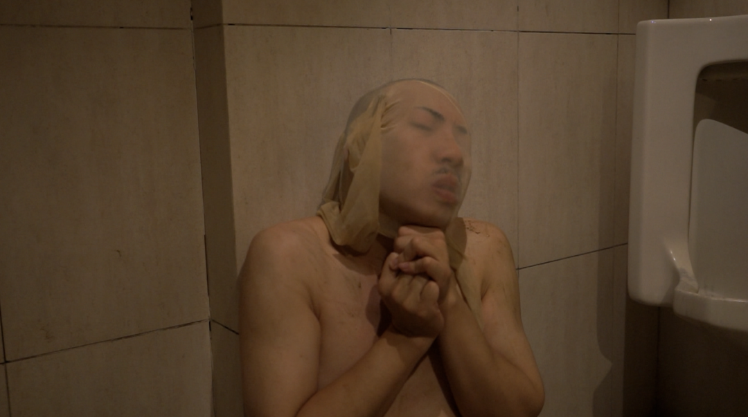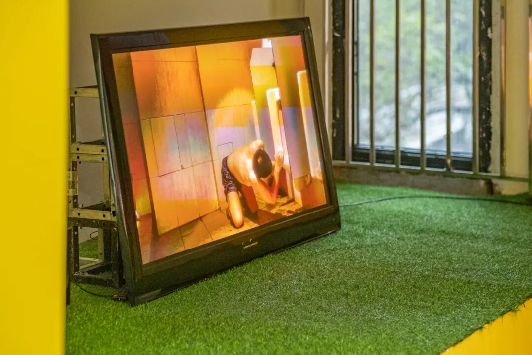 张听:在这次展览上,我把19年做的一个片子《屎人》拿出来重新剪辑了一下,放在展览入口的位置,这个片子从拍出来到现在都因为尺度太大而没有完整的在展览上展出过,当时的我以一种不太成熟的方式直接表演、直接的宣泄,在现在看来恰恰又特别好,有种意想不到的感觉。在片子里我想演一个病态的人,他是不健全的,想要融入社会但是寸步难行,这种状态可以是一个人的,也可以是一个群体的。
