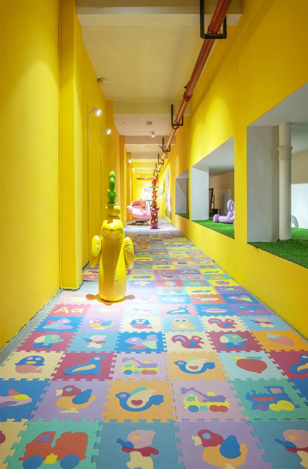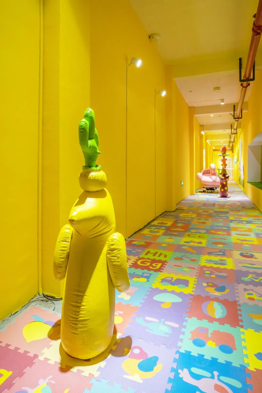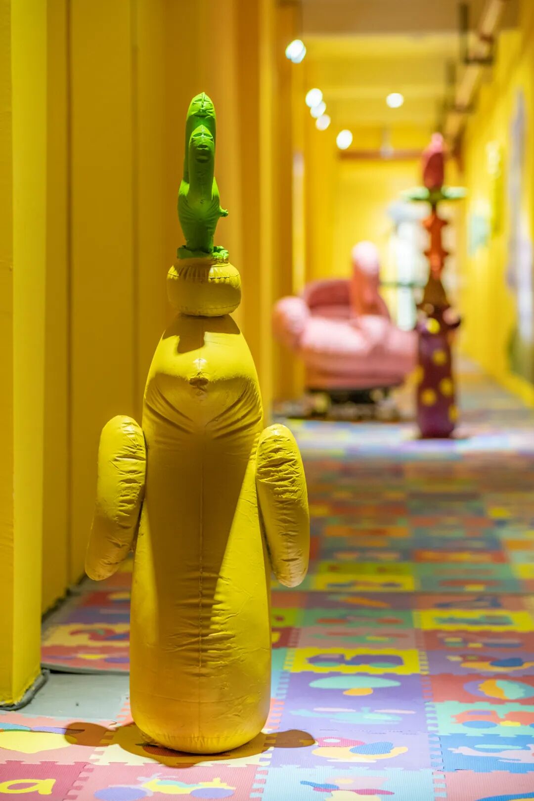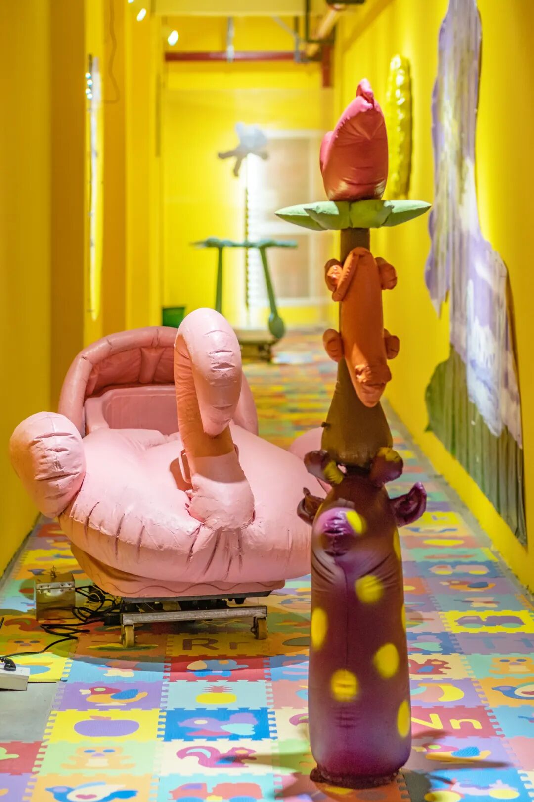 “塑料感”是塑料气模的表象,在这个表象的背后是一种隐喻,这些形象代表着一代人又影响着一代人,这些形象都是来自我们的童年记忆,是属于一代人共同的记忆,它伴随着我们一起长大,在一定程度上也影响着我们。在展厅里的一些作品是我对那个时期的图像进行的检索和提炼,我试图让看到我作品的“观众”去重新审视童年时期的图像,去联想到一代人,去联想到他们的状态。