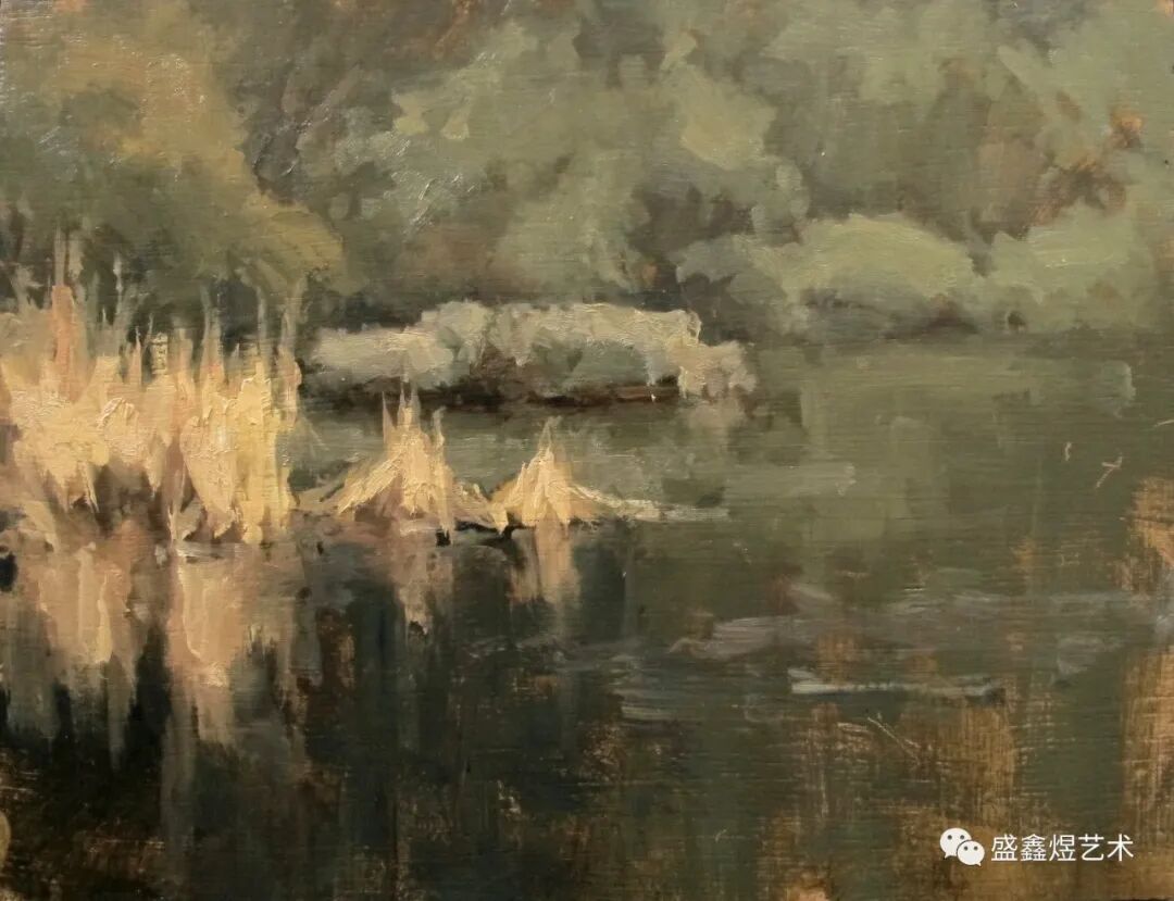 我们在他的场景中看到了一种令人难以置信的对光线和氛围的感知,散发出一种空灵的生命力,感人至深。他的场景在某些区域呈现出惊人的现实主义感,而在另一些区域则发散成管弦乐般的色调和色彩安排,完全脱离了形式,但整体上保持了美妙的和谐。有一种刚劲,也有一种脆弱,仿佛他在作画的过程中冒了险。