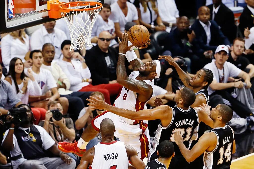 2013年,勒布朗·詹姆斯(LeBron James)带领迈阿密热火杀入NBA总决赛,与圣安东尼奥马刺激斗七场,最终不但成功卫冕,个人亦蝉联总决赛最有价值球员。