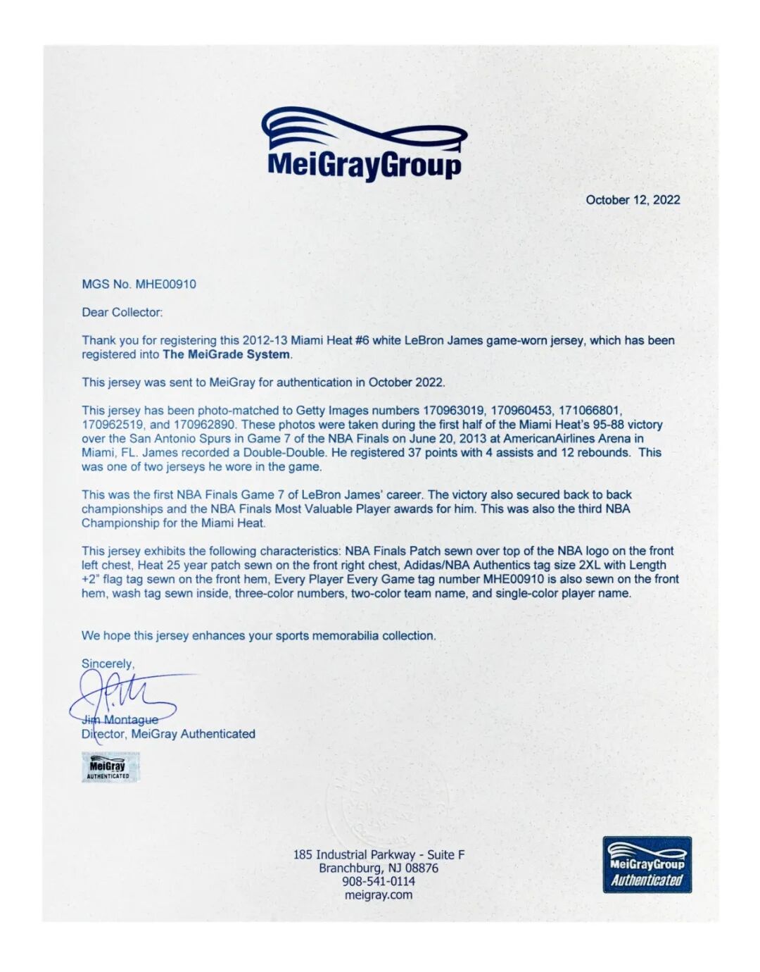 詹姆斯在这季总决赛第七场穿着的战衣,将于本月27日在纽约苏富比举槌,估价US$300万 - 500万(RMB 2,000万 - 3,350万)。