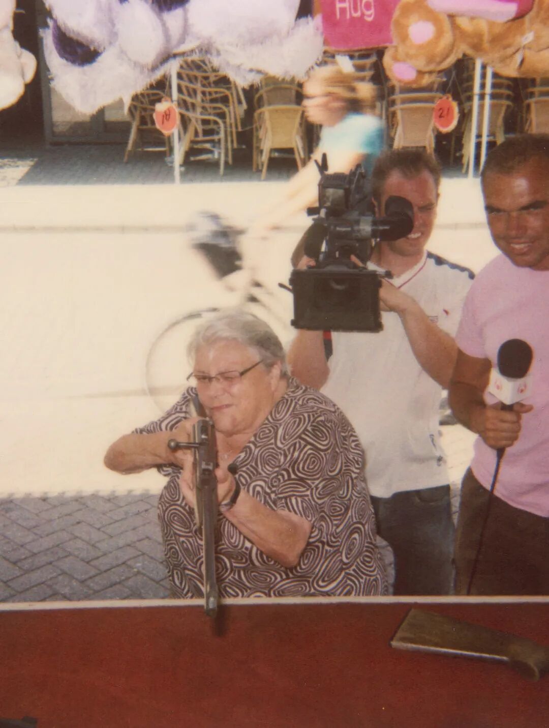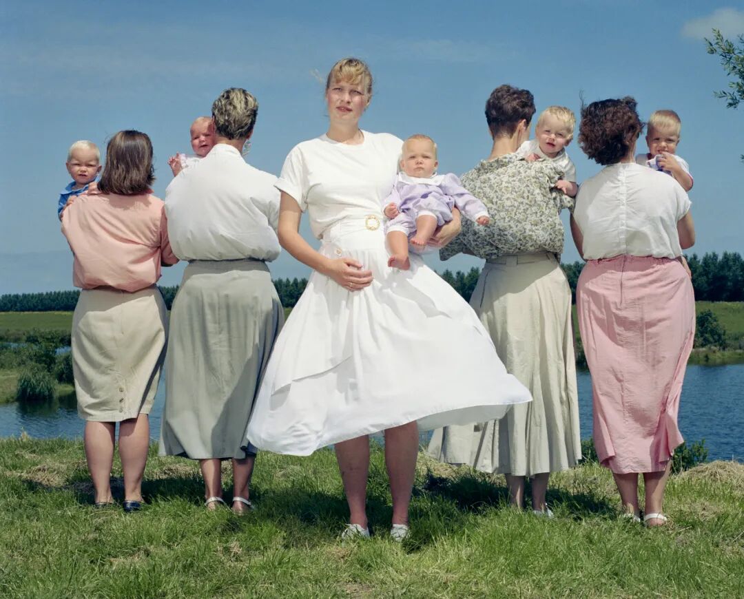 想象一个他者,天然地要求了时间的纬度。相比空泛而笼统的宏大叙述,荷兰的摄影似乎更亲近那些以个人或微观的视角表现历史的选择。埃瑞克·卡瑟斯(Erik Kessels)的《在几乎每张照片里#7》(In Almost Every Picture #7)就是一个绝佳案例。从1936年起,女孩儿里亚·范·迪克每年都会留下一张在射击瞬间拍摄的照片,一直到2016年。这些照片都有着相似的构图,端枪站在照片正中间的迪克眯着一只眼瞄准,背景常常是围观的路人、街道、游乐园设施。这里的每张照片都是荷兰社会的一个时空切片,横跨80年的切片合集共同构成了一部关于荷兰社会的微缩编年史。与寻常的人像快照不同,在构图统一的系列图像中,真正的主角变成了时间与历史本身。人物衣着和发型的变化标志着时尚潮流与制衣技术的更迭,街景与游乐园设施的演变则为观测社会的发展提供了些许线索。快照的质感给人极强的在场和真实感。如果只观察两张相邻的照片,大多数时候难以看到差别,然而若是挑出两张相隔数十年的照片,则会让人不由得感叹时光荏苒。照片的色调、对比度、颗粒质感等方面的变化,似乎也标志着摄影技术的代际更迭。
