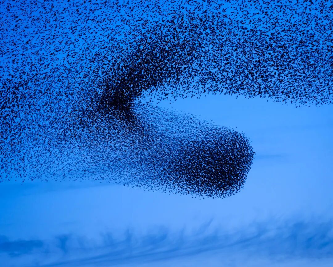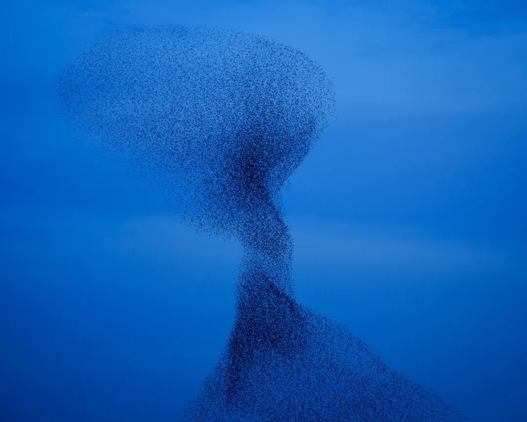 另一种试图归类荷兰摄影风格的论调往往是从美学角度进入。以薇薇安·萨森的视觉风格为代表,抽象、诗意、色彩明艳且对比强烈,常常被与荷兰设计并列讨论,以建立一种基于国族的美学沿袭叙事。年轻一代的摄影师,如这次展览中选择的约翰内斯·博斯格拉(Johannes Bosgra)拍摄的蔚蓝天空中近百万只椋鸟成群飞舞的身影,以类似音乐韵律的不断运动构成变化万千的抽象景观。这种对比强烈、色彩鲜明的风格,总是轻而易举地让人想到现代艺术史上荷兰最浓墨重彩的一笔:以皮特·蒙德里安(Piet Mondrian)为代表的“风格派运动”(De Stijl)。然而,形式上的类似并不足以作为其美学承袭的充分论据,尤其在抽象风格的讨论里,极易落入伪形似(pseudomorphosis)的陷阱。此外,抽象的视觉语言往往和情感一样更具有跨文化性和普适性,很难在此基础之上来界定一个以国族为锚点的风格或特征。