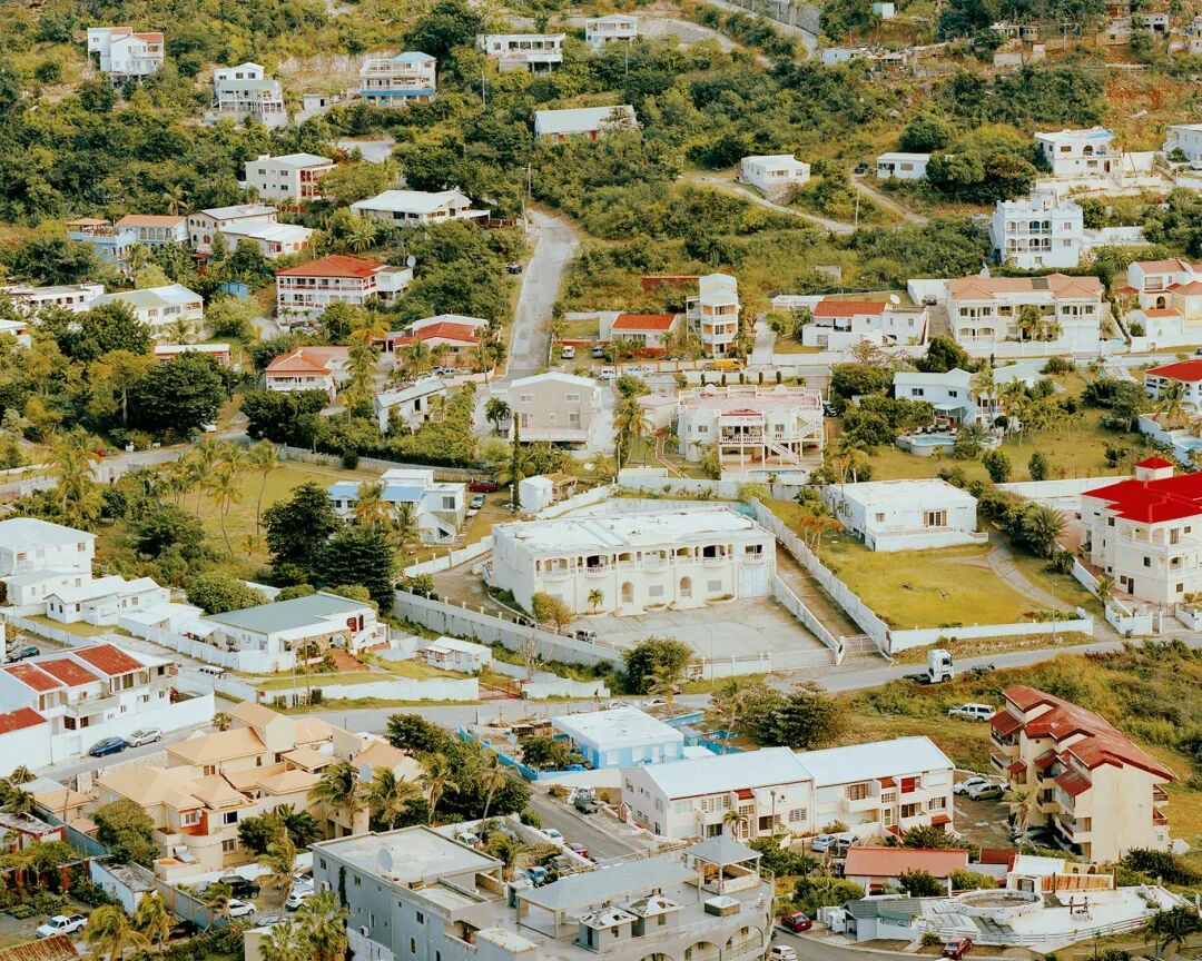 这种叙事还体现在更大尺度的地缘层面上。在远离欧洲大陆、相隔整个大西洋的加勒比海区域,分布着荷兰的三个自治国—阿鲁巴、库拉索以及荷属圣马丁。其中,由哥伦布首次发现于1493年的圣马丁岛最为特别。历经了几个世纪的荷法地缘博弈后,它仍一半归属荷兰、一半归属法国。现今的圣马丁岛是旅游手册上的度假天堂。出生于库拉索岛的摄影师吉勒姆·特拉彭伯格(Gilleam Trapenberg)在《这肯定是天堂》(Gilleam Trapenberg)中,用彩色亮丽、极具视觉冲击力的图像向人们展示着圣马丁岛上的景观与人。饱受教育与健康等公共资源的匮乏、经济发展模式单一、气候危机等社会问题困扰的美丽岛屿是如何沦为外来消费者的天堂?岛屿研究者贝亚特·M.W.拉特(Beate M. W. Ratter)在其《小岛地理学:全球化的前哨》(Geography of Small Islands: Outposts of Globalisation)一书中指出,“岛屿是全球化的前哨(outpost)”,而“前哨”的定义根据历史的变迁需要得到不同视角的解读。在大航海时代,作为被征服、攫取与压迫的对象,岛屿是殖民者攫取财富的工具;而随着世界被帝国瓜分殆尽,岛屿变成不同帝国的角逐场,其军事意义逐渐超过经济价值。帝国的没落让小岛纷纷寻求主权独立与自治,它们不得不在随之到来的全球化时代里艰难地寻求自力更生之道。旅游业是市场给出的答案,岛屿用自身的视觉与身体经验置换现金与流量,默默吞下隐形的代价—岛屿也是生态崩溃的“前哨”。圣马丁岛的历史完整地映射了这一历史叙事的各个阶段。现如今,小岛的殖民历史与伤痛被其消费属性彻底遮蔽,而特拉彭伯格正是试图通过摄影让人们重新看见其作为“度假天堂”这一刻板印象之下的多重历史与现实。