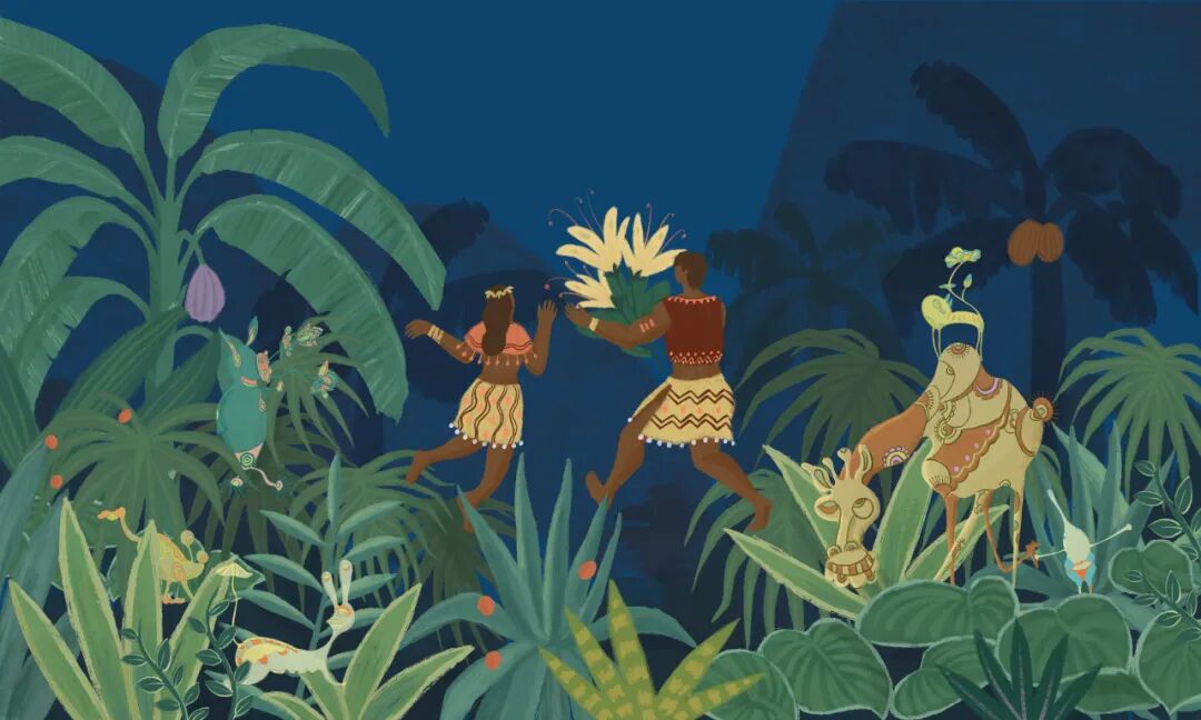 我们用红绿两种颜色作为对碰,展示出自然与人类茹依茹附,相伴共存而又斗争对抗的状态。在两年的疫情时代,每个人都憧憬着生命的活力和原始喷薄的力量,舞动的人和生命之树,映衬其中,青春的力量与欢腾。