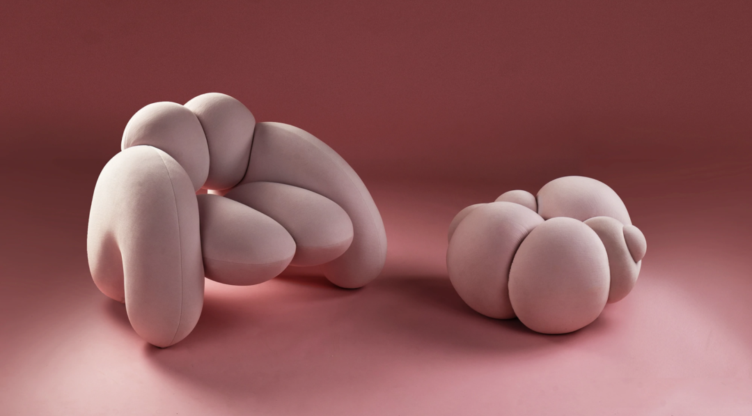 《桃子》由“大女孩”扶手椅、Derrière扶手椅和桃色脚垫组成。灵感来自女性的身体和曲线,每件作品都代表着可拥抱的女性形象。光滑的曲线、匀称的表面和肉体式的褶皱,让人联想到女性的身体。