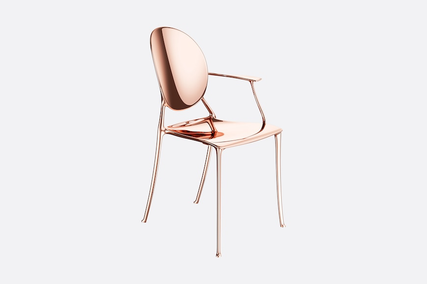 Dior Maison邀请Philippe Starck重新诠释了标志性的Médaillon椅子。他从外型轮廓著手,简化了曲线,并将其命名为「Miss Dior」,向大胆而优雅的女性气质致意。