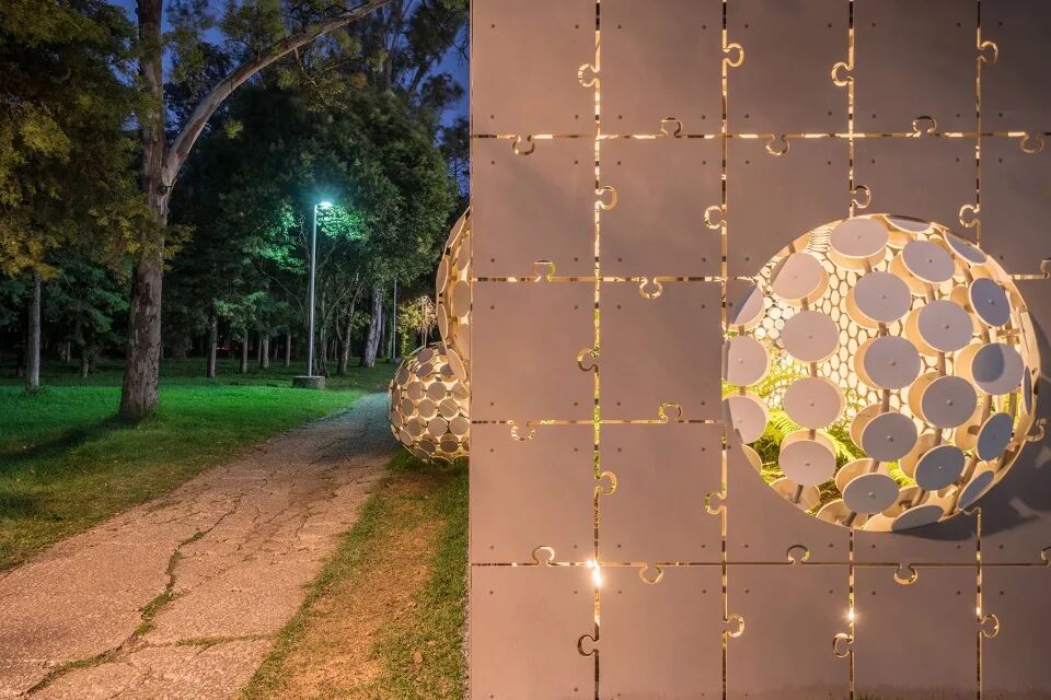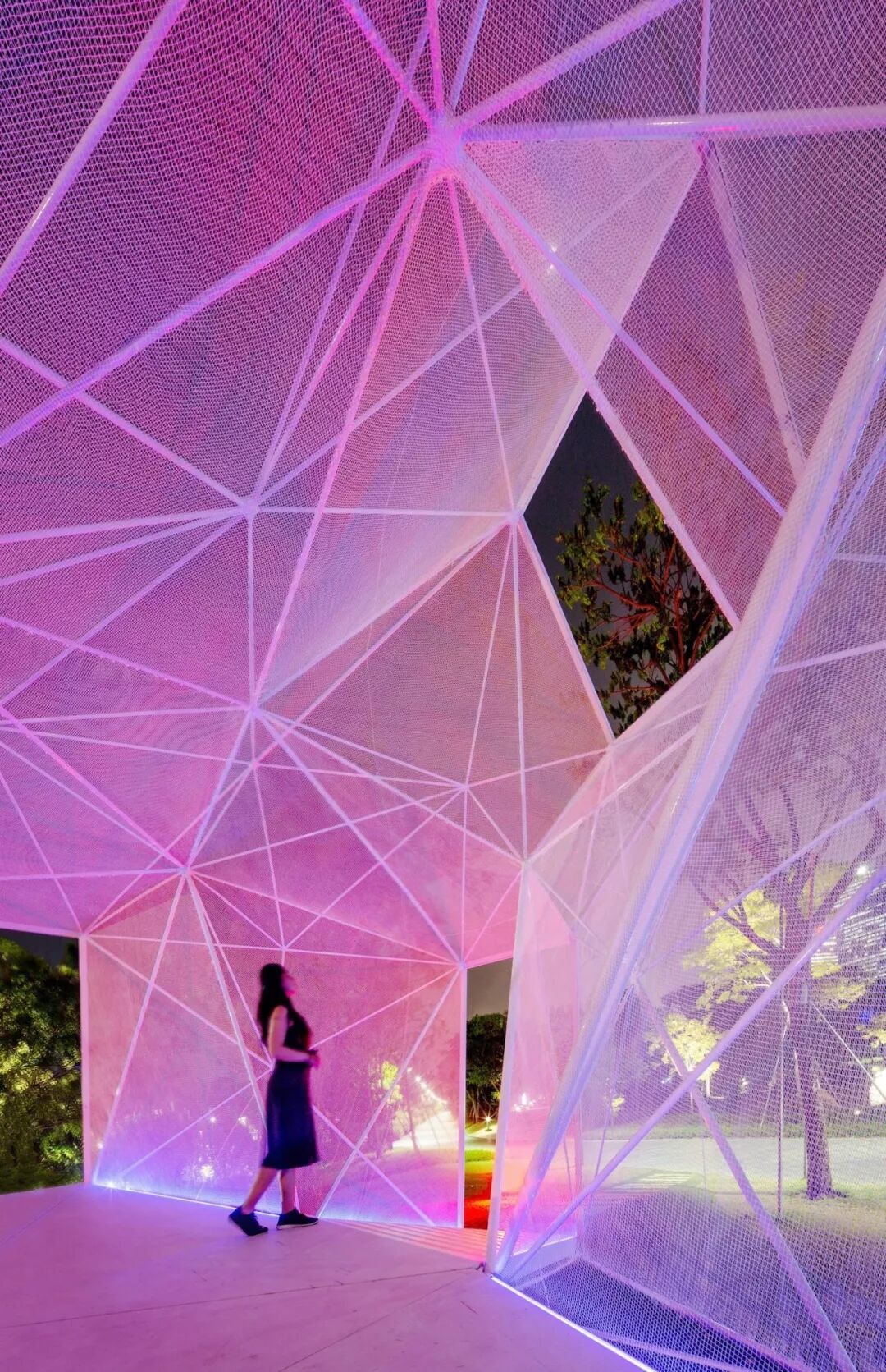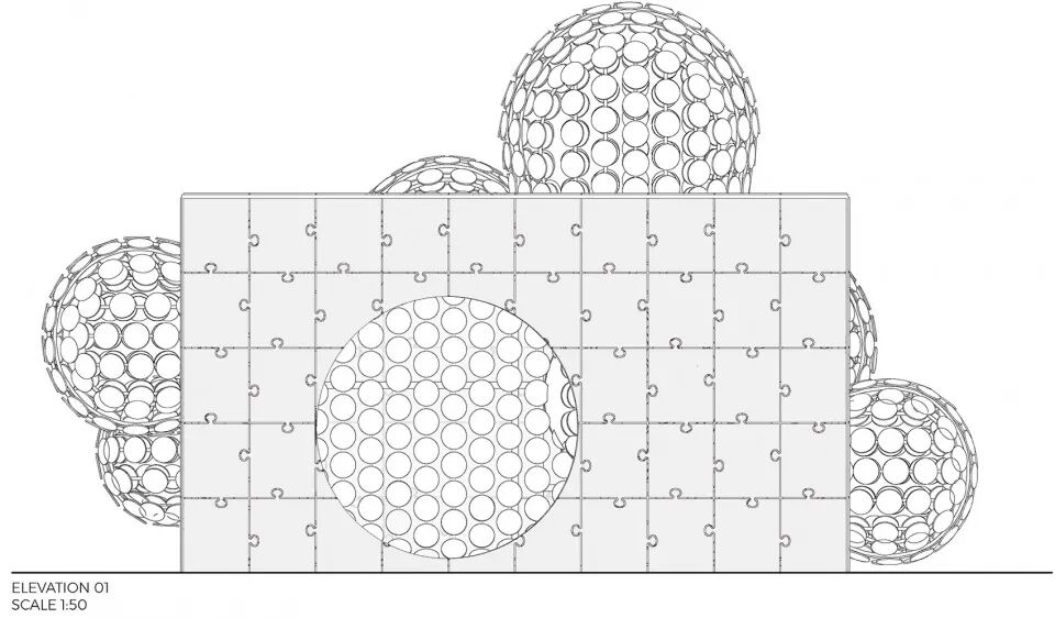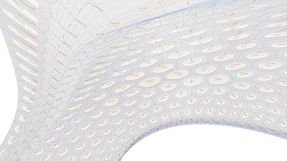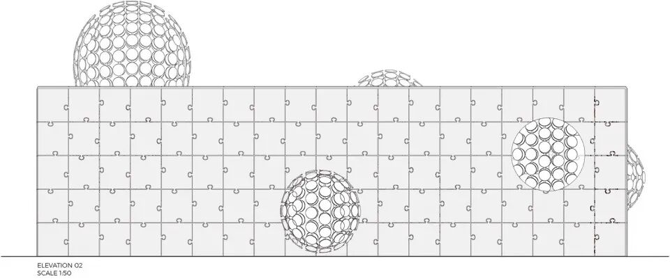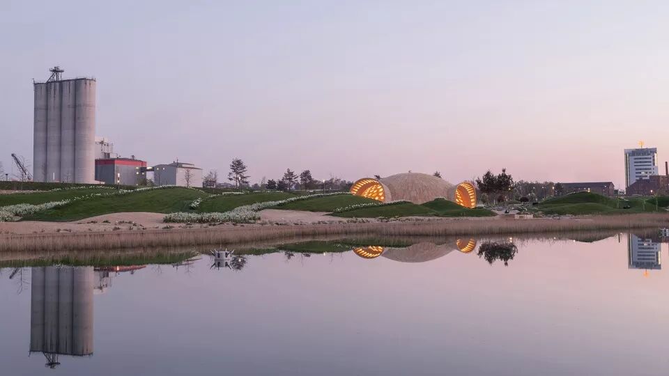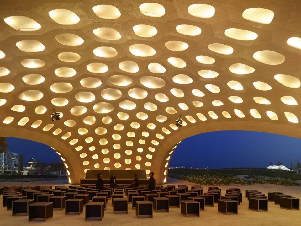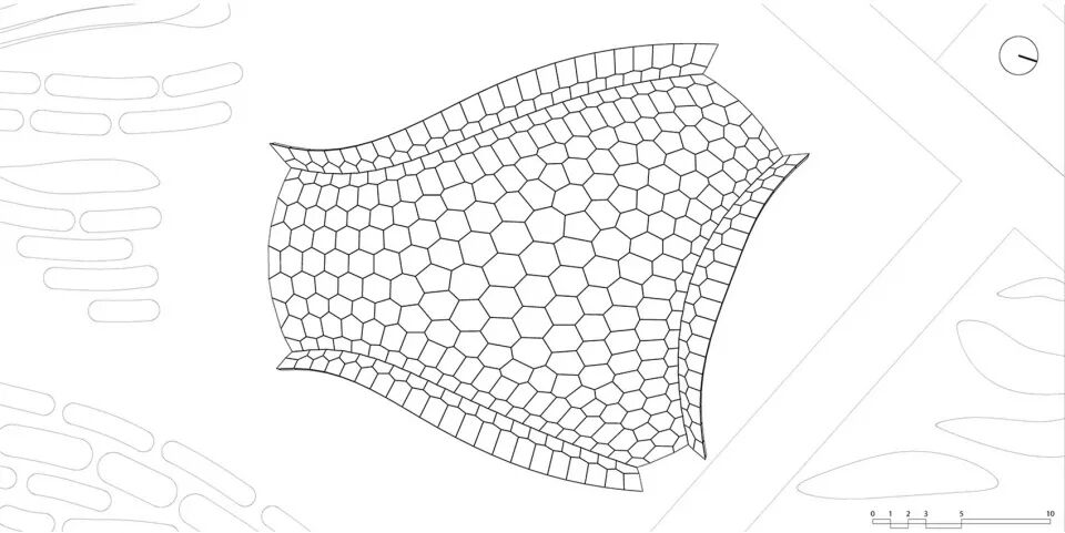 展厅东北侧外观,设计基于海胆骨架的形态学原理