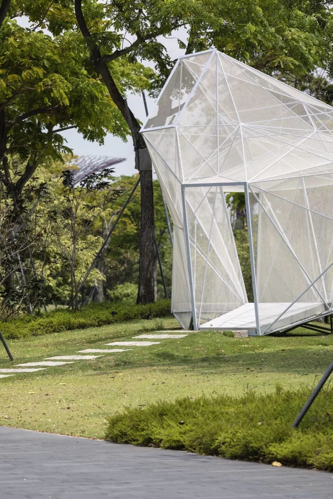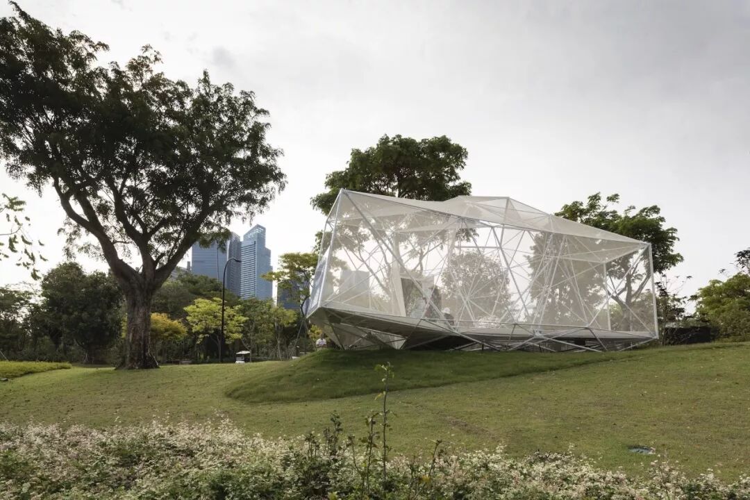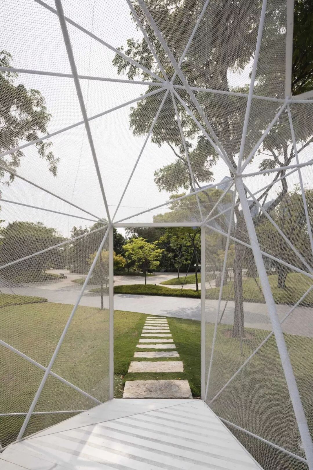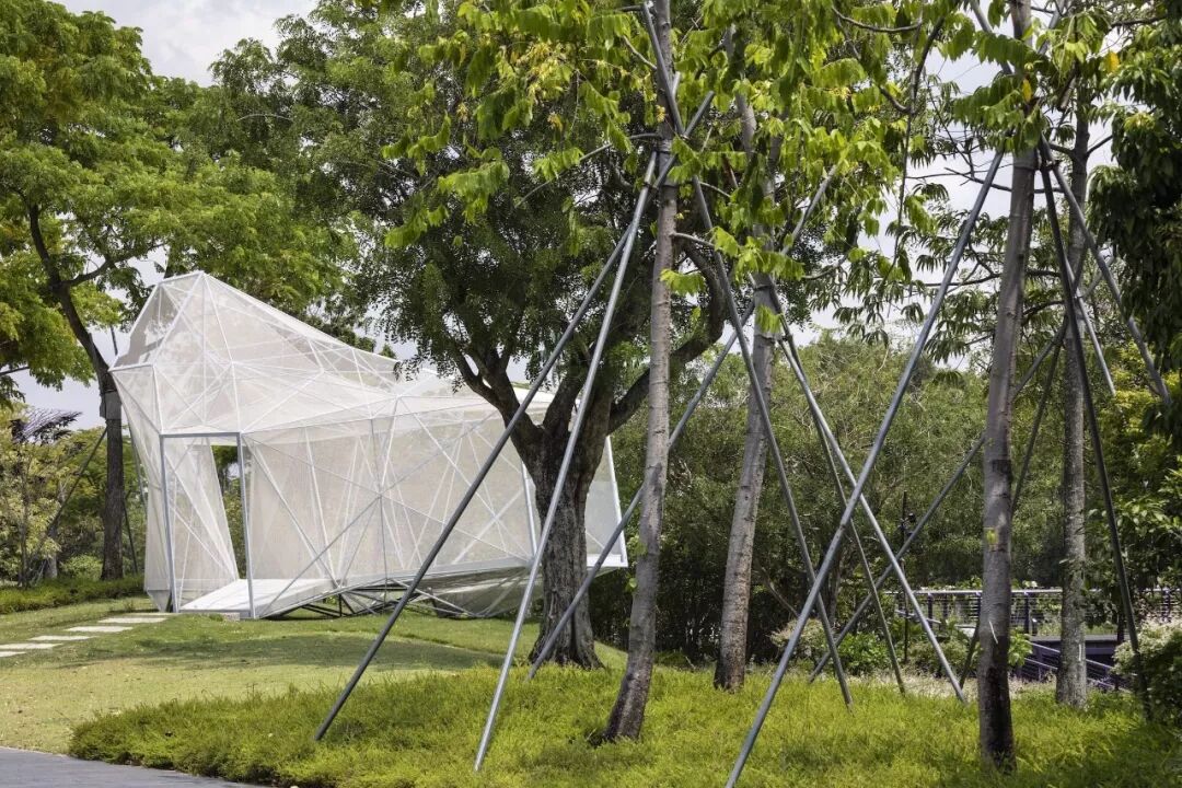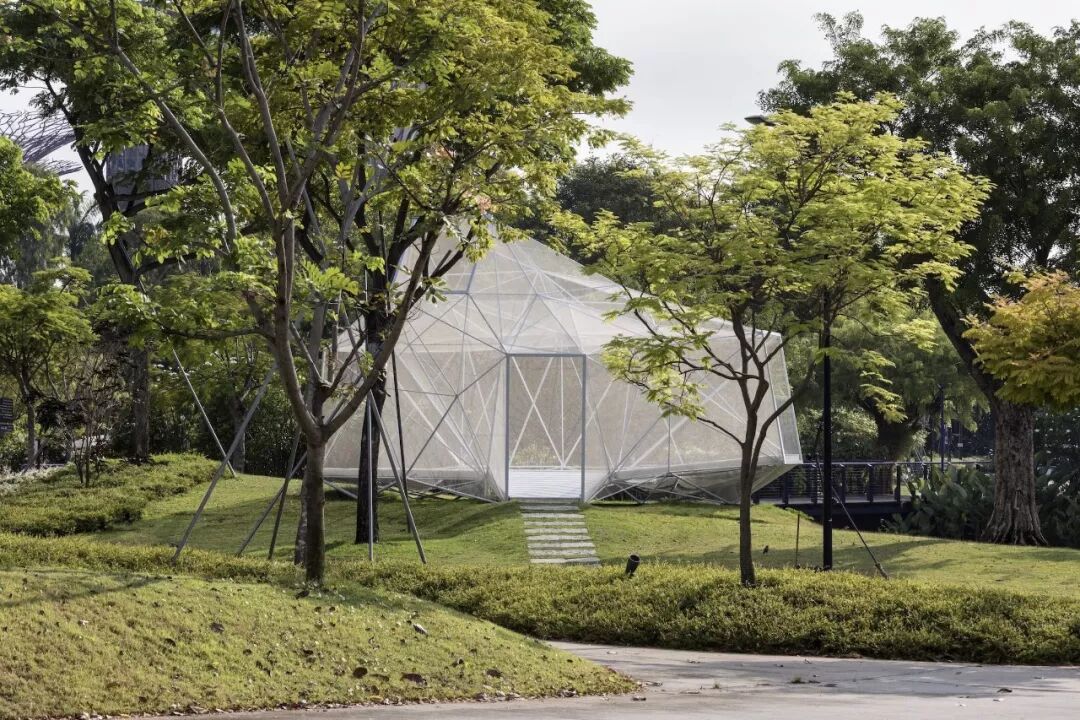 展厅北侧外观,展亭建立在仿生学原理的基础上