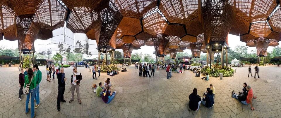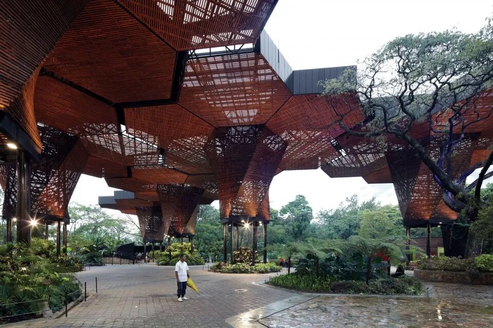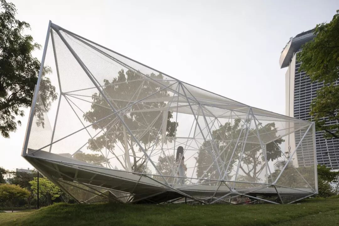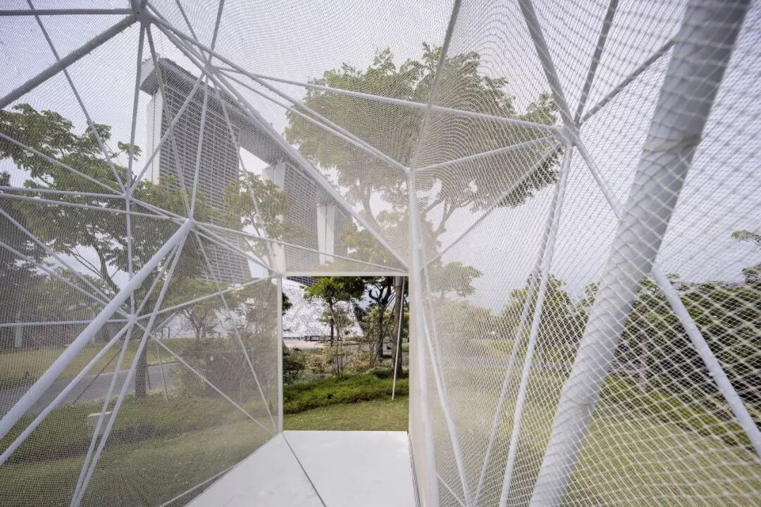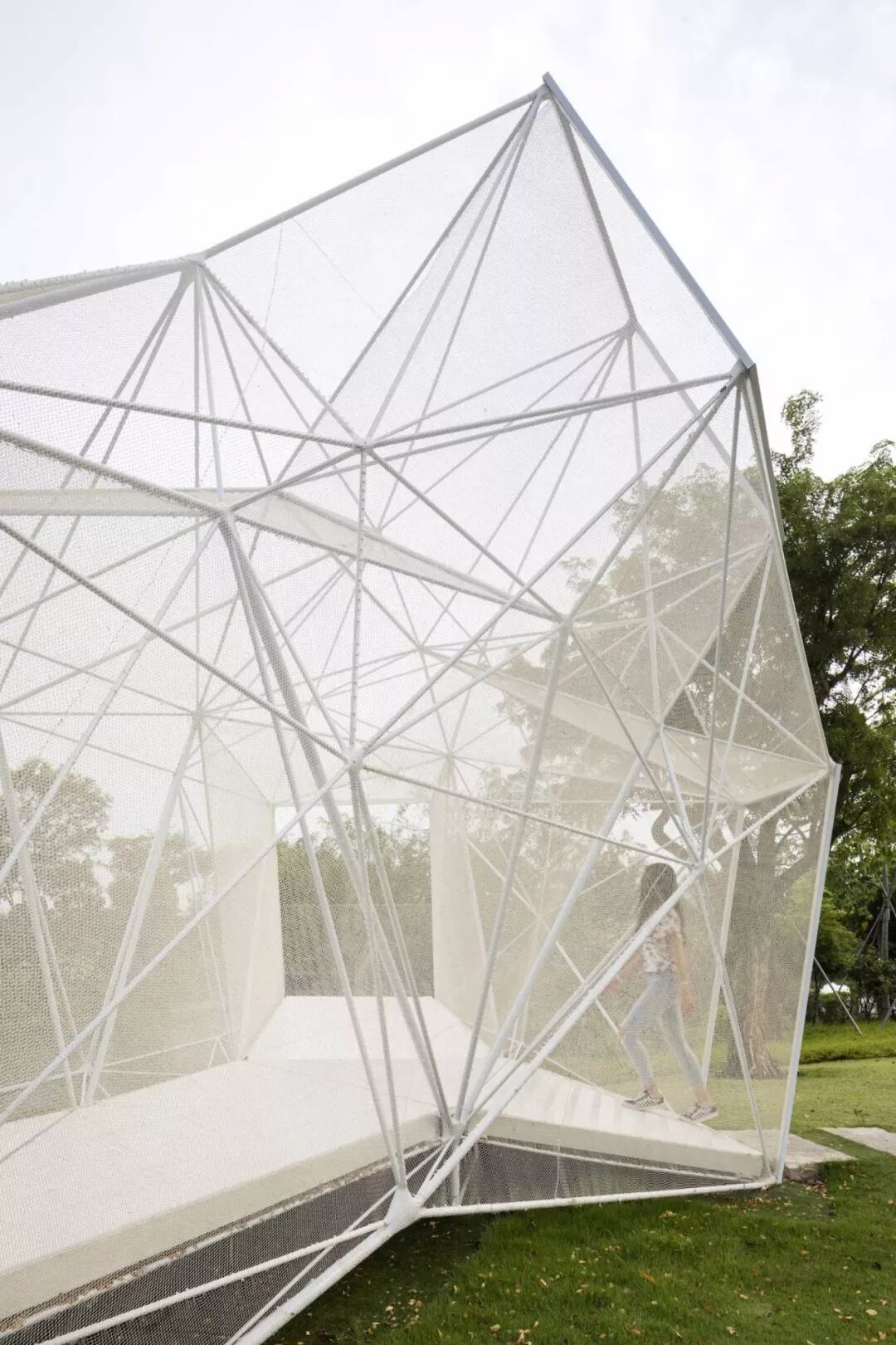 展厅北侧外观,展亭建立在仿生学原理的基础上