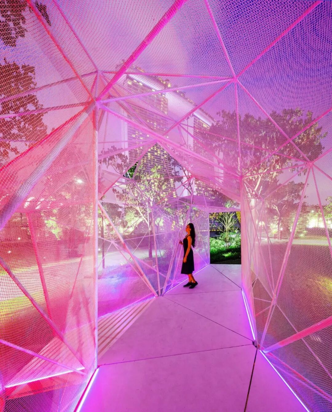 ▼完全使用木材建造的展亭邀请游客们进入大自然最神秘的部分——树林的中心腹地
