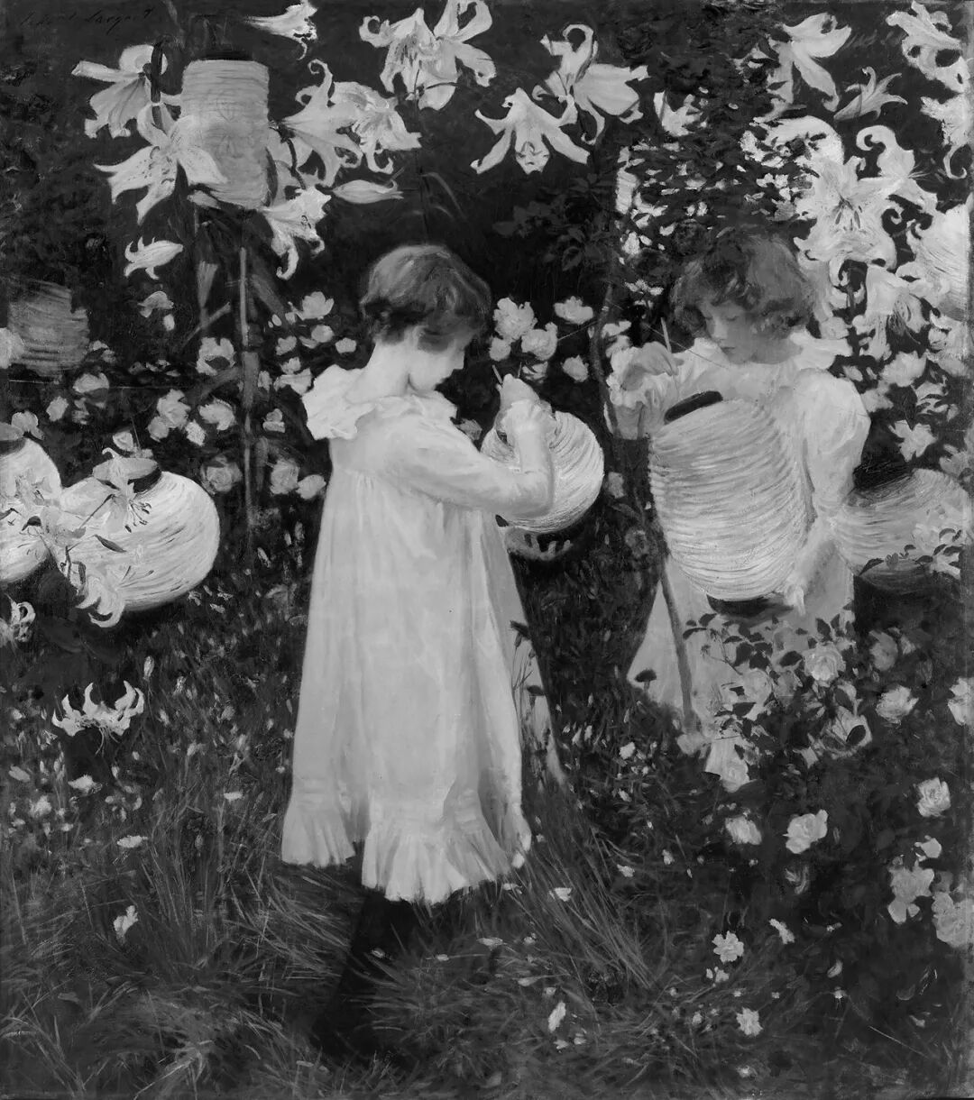 这句话听起来有点难以理解,让我们通过萨金特的描绘瞬间光色效果代表作《康乃馨、百合与玫瑰花》这张画来详细分析一下。