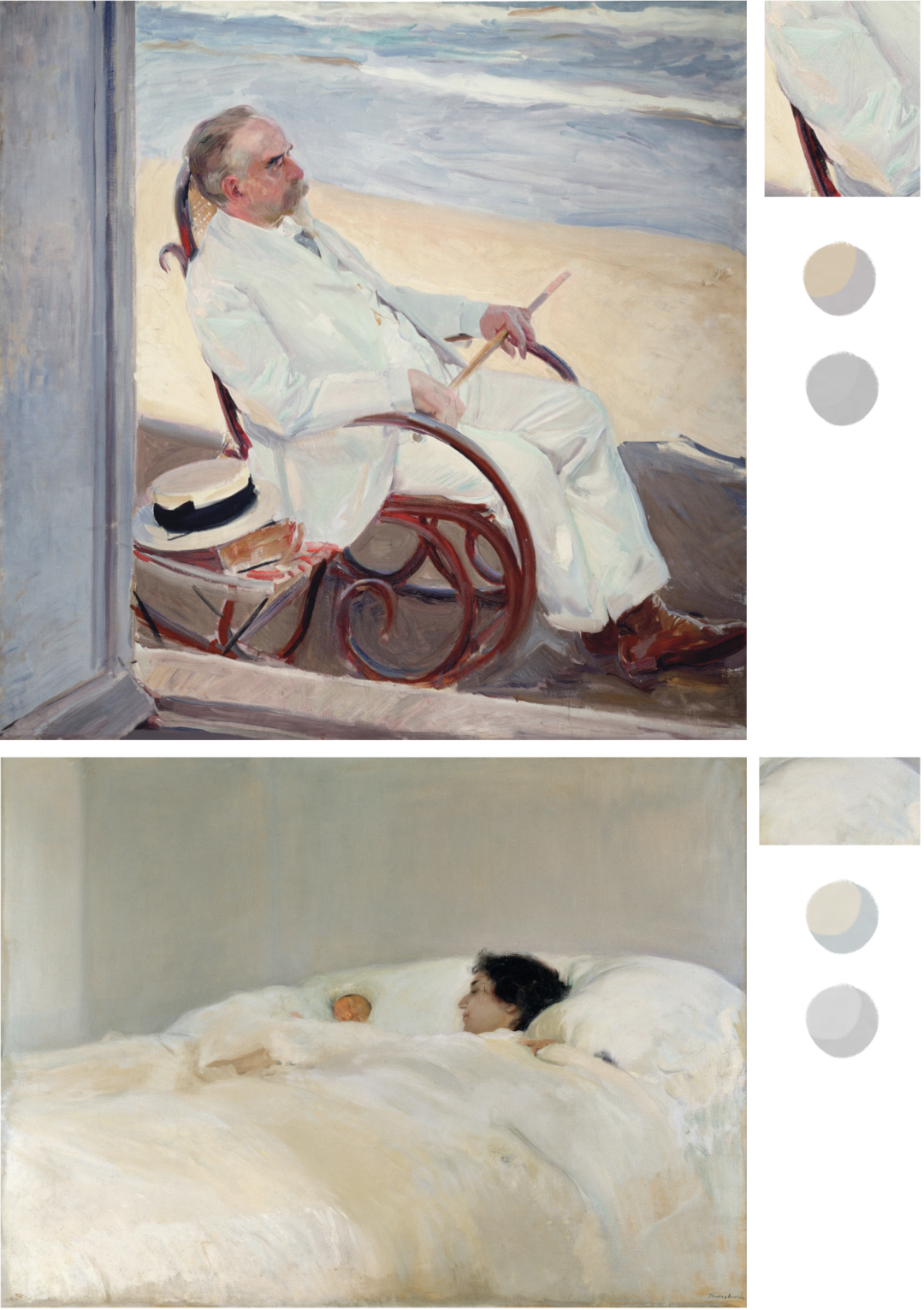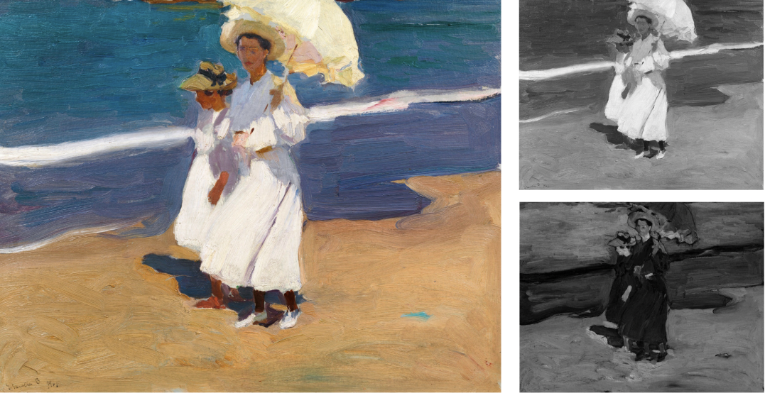 但是当你观察索罗拉的画,你会发现他使用了很多饱和度很高的颜色,而这些颜色在画面里耀眼却又融合,他是怎么做到的呢?