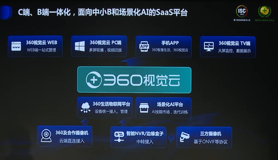 4.开放的策略布局。360的产品、渠道、平台采取开放的模式,在产品接入部分,不设门槛,任何有开放能力的厂商都可以通过360视觉云做设备接入。在渠道,对准入的选品和品质都有高要求,品质过硬的产品才会授权“炫视”生态分销子品牌流入市场。在平台,开放算法的接入,支持云端算法云云接入,主动支持平台的能力被集成。