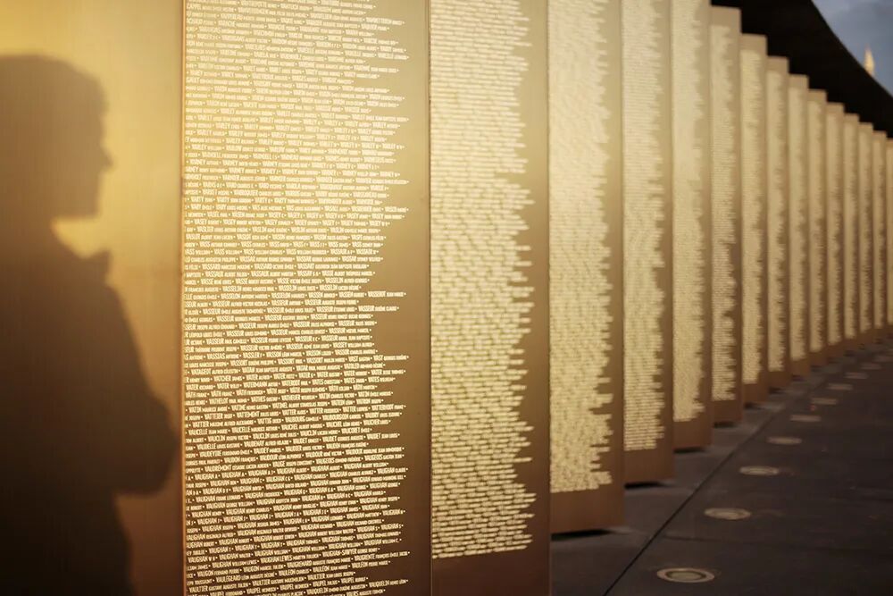 该项目由法国建筑师菲利普·普罗斯特设计,入围2016年英国皇家建筑师协会国际奖。在悲伤已经平复的100年后,建筑师希望给同胞建立一座艺术与自然相结合的“和平之环”。金色环体内侧不分等级的镌刻着参战士兵们的名字,仿佛在提醒人们和平的来之不易。