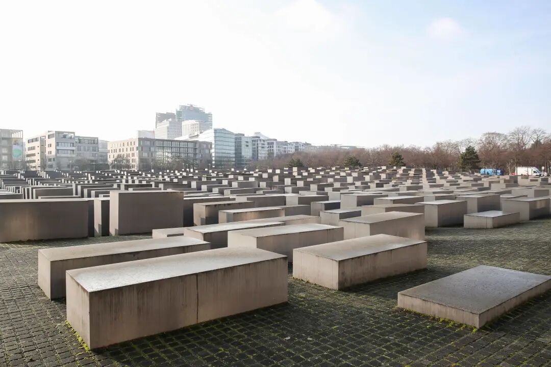 犹太人大屠杀纪念碑群位于柏林市中心,是一座纪念所有被德国纳粹屠杀的犹太人的建筑物。这座纪念馆由美国建筑师彼得·艾斯曼设计,它由2711块灰色的矩形水泥墩组成,各水泥墩倾斜角度不同,其间地面也高低不平,让身在此处的参观者产生一种错乱的迷失感。