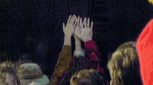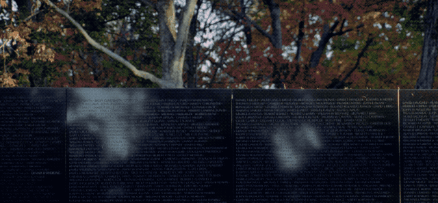 1982年11月13日的揭幕仪式上,人们在纪念碑上寻找着自己在越战中死去的朋友或亲人的名字,献上鲜花和礼品,寄托哀思。当移动手指在寻找特定的名字时,许多其他人的名字被轻轻抚摸,因而创造出了参观者与战争死亡者之间的一种非常个人化的联系或缘分。