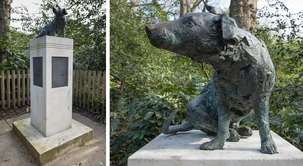 起始是为了揭露动物活体解剖实验真相而建造了一座碑文纪念碑,然而纪念碑的修建引发医学院学生与当地居民、反活体解剖者之间的冲突,后来纪念碑不得不被拆除,但依然引起了广泛的公众谴责。上图的“新”纪念碑用小狗雕像代表了当年被解剖的323只实验狗,不仅是对原始纪念碑和过去残忍行为的纪念,也是对动物试验的深刻提醒。