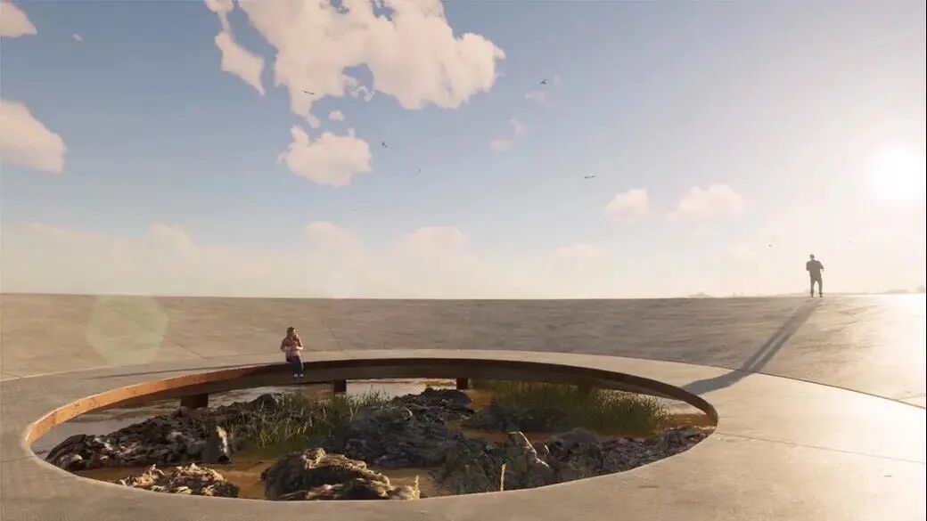 纪念碑将矗立在城市滨水区的边缘,通过长长的人行道进入。当游客站上圆形平台,感受到壮阔的海洋、辽远的天空,以及脚下苍茫的大地,外观自然而内省于身,寄托反思和哀悼。大型的圆形结构将起到“弥合城市与自然世界之间的差距,为内省创造理想环境的感官体验”的作用。