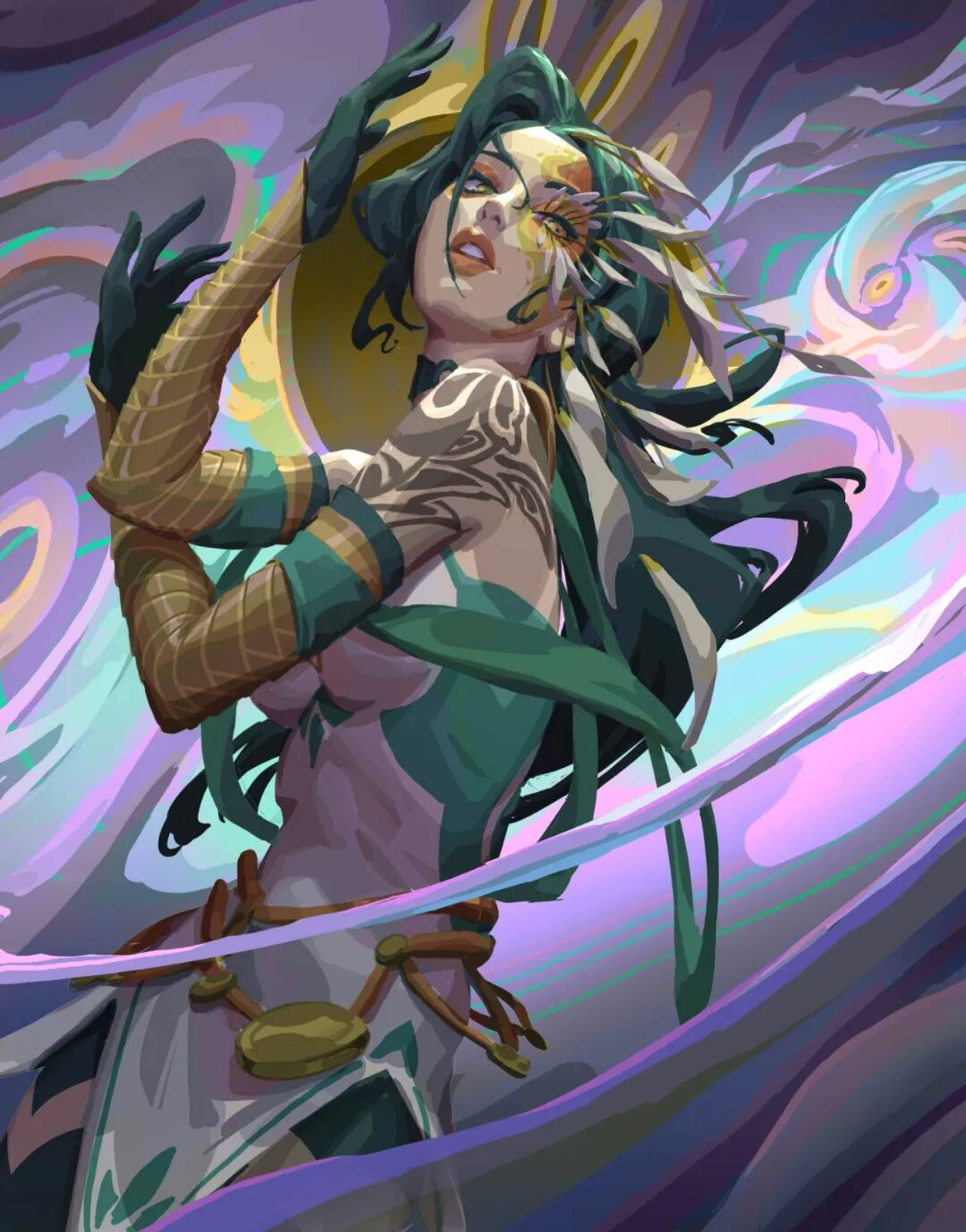 一小块灰:其实直到去年参赛前,我也一直没有特别明确的个人风格,大致就是欧美写实向的风格吧。然后通过参赛的半年时间,研究了很多大师的作品和风格,从Frank Frezetta和Paul Bonner这类偏古典风格的大师开始学习,到Even Amundsen、Thomas Chamberlain-Keen这类设计非常强的大佬。先后学习了古典绘画的一些技巧和表现特点、现代塑造的特点和区别、设计节奏的控制等,尝试将这些内容整合表达,就形成了GGAC参赛图《风之诗》那一套的风格。