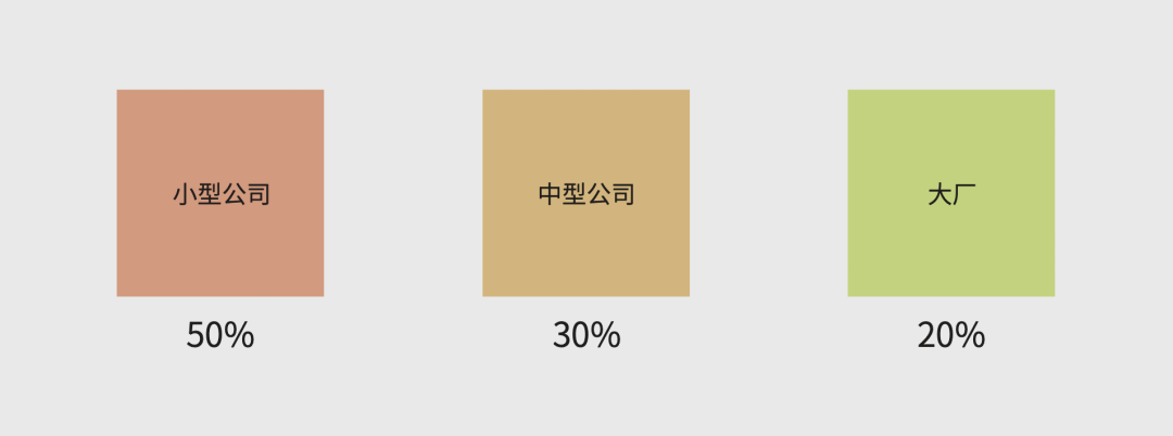 即50%的小公司作为保底,只要在自己薪资范畴之内,这些小公司就是你的保底。30%的中型公司,应该是你目标当中的核心公司,20%的大厂是你可以冲击的目标,万一成功了,逆袭的人生就从此开始了。