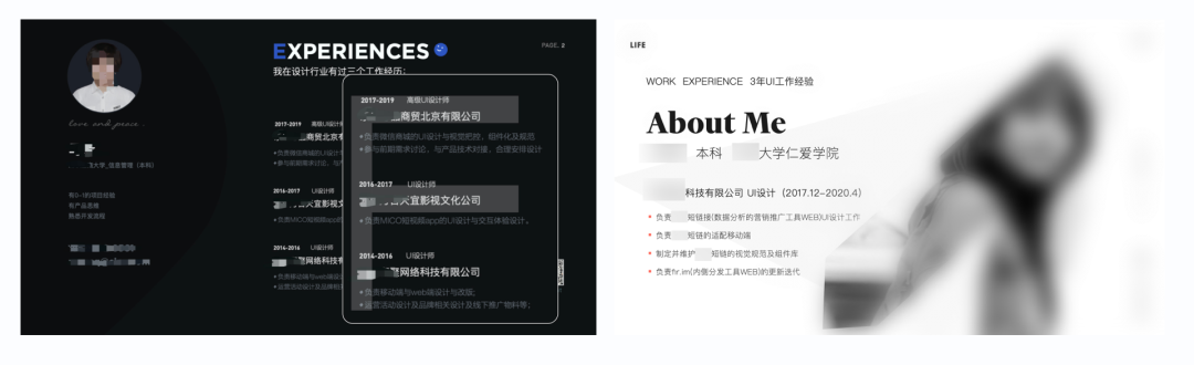 所以设计的时候,我们需要注意在视觉上要区分于其他普通页面,又不能视觉做得过于花哨,让面试官误以为这是一页视觉展示。
