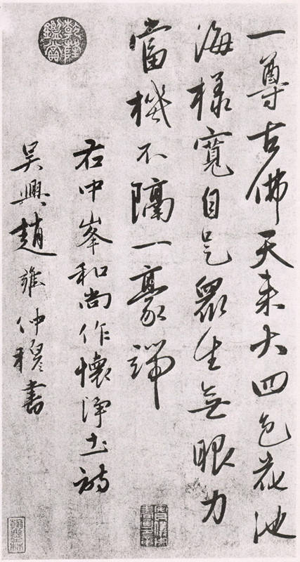 最新文章2023-12-26 赵孟頫之子赵雍书法 赵雍(1289-?)字仲穆,湖州人,赵孟頫之子。书画继承家学,赵孟頫尝为幻住庵写金刚经未半,雍足成之,其联续处人莫能辨。擅山水,尤精人物鞍马,亦作界画。书善正、行、草,亦长篆书,精鉴赏。传世作品有《兰竹图》《溪山渔隐》等。 本文来自微信公众号“上海美术观察”(ID:pyyjb123)。大作社经授权转载,该文观点仅代表作者本人,大作社平台仅提供信息存储空间服务。 TAGS: 传世作品兰竹湖州人赵孟頫 相关文章英赫日报 | 李宁 × 空…米兰时装周的异星来客,用结…米兰“MoLo”移动与物流…西班牙艺术家 Juan d…把小鸟画成美少女,她弃医从…这些鸡蛋包装不只是有趣,设…国产文具又炸了!晨光再造“…七点资讯 |《更衣人偶坠入…AlphaDraw筑绘通「…秦始皇的黑,是你不懂的黑。